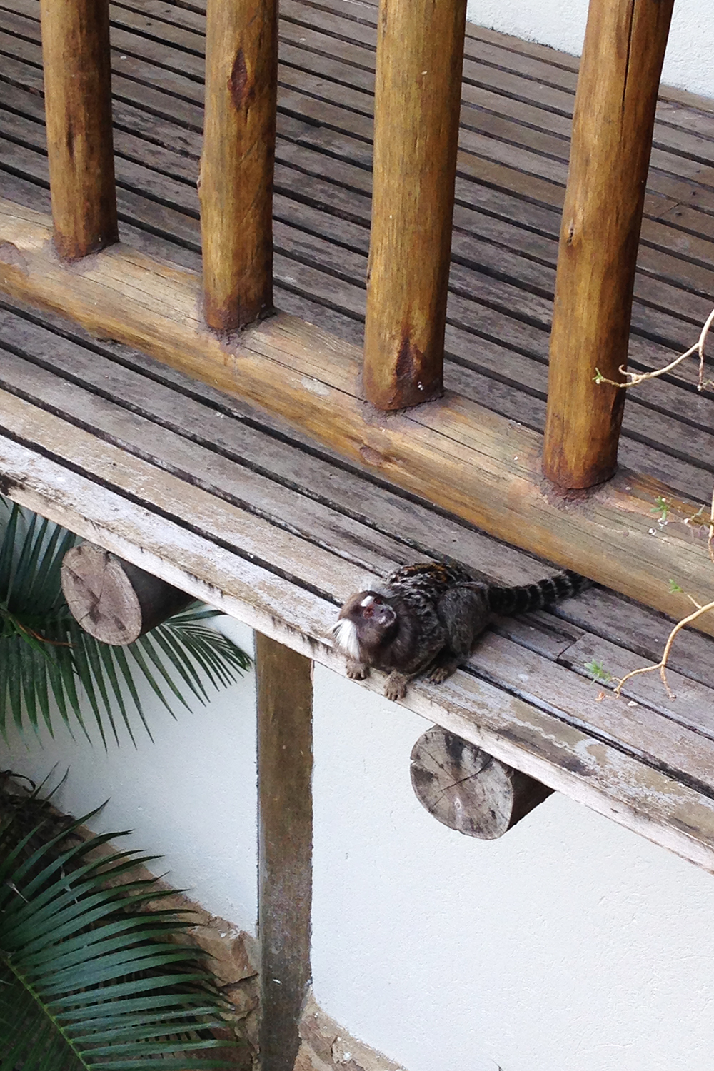 Geschlafen haben wir für sieben Tage in der Pousada Espaço Nativo. Das absolut beste und schönste Hotel das ich bisher in Brasilien besucht habe. Das junge Team war super freundlich und hat uns immer weiter geholfen, die Lage war perfekt, direkt im Zentrum des kleinen Ortes und das Frühstück so unglaublich vielseitig und ausgiebig, wie ich es noch nie zuvor gesehen habe. Noch dazu war unser Zimmer total schön und wir hatten eine unglaubliche Aussicht auf die Hügel der Insel. Einmal habe ich sogar eine ganze Weißbüschelaffenbande vor unserer Haustüre entdeckt, die sich aber schnell verzogen haben, weil sie doch nicht ganz so zutraulich waren.