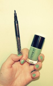 Nach dem der grüne Nagellack von Topshop nicht geliefert wurde, musste ganz schnell ein anderer her. In etlichen Blogs wurde der Nagellack von Catrice angepriesen also entschied ich mich, ohne lange nach zu denken, für ihn, noch dazu weil er das opimale Grün versprach. Schlussendlich bin ich selbst auch ganz begeistern, ich habe ihn mir zwar etwas blickdichter vorgestellt (aber da bin ich wohl von meinem Rimmel Nagellack zu verwöhnt worden), aber er erfüllt doch seinen Zweck! Und weil ich gerade bei Müller war, packte ich mir auch noch den Eyliner Stift von Essence ein, denn den gibts für knappe 2€, hingegen kostet einer von Maybelline 8€. Trotzdem werde ich das nächste mal wieder den von Maybelline kaufen, weil der von Essence einfach viel zu schwach und transparent aufträgt. Da muss man 10x drüber pinseln, bis man einen richtig schönen schwarzen Strich hinbekommt.