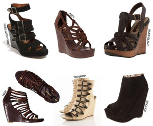 Anfangs war ich ja skeptisch bei dem Anblick der Keilabsätze, die ich das letzte mal in den 90er Jahren gesichtet hatte. Spät aber doch ließ aber auch ich mich davon überzeugen, dass Wedges nicht nur gut aussehen können, sondern auch dass man damit total gut laufen kann und im gegensatz zu Heels das nervige „Klack Klack“-Geräusch vermieden wird. Seit ich selber stolze besitzerin von einem Paar Wedges bin, bin ich auch schon wieder ständig auf der Suche nach neuen schicken Schuhe mit der selben Absatz Ausstattung. Vor allem auf erdige Farbtöne habe ich es abgesehen. Drei Favoriten habe ich von den oben Angeführten Wedges: die von Urban Outfitters, River Island und H&M. Welche sind eure Lieblinge?
