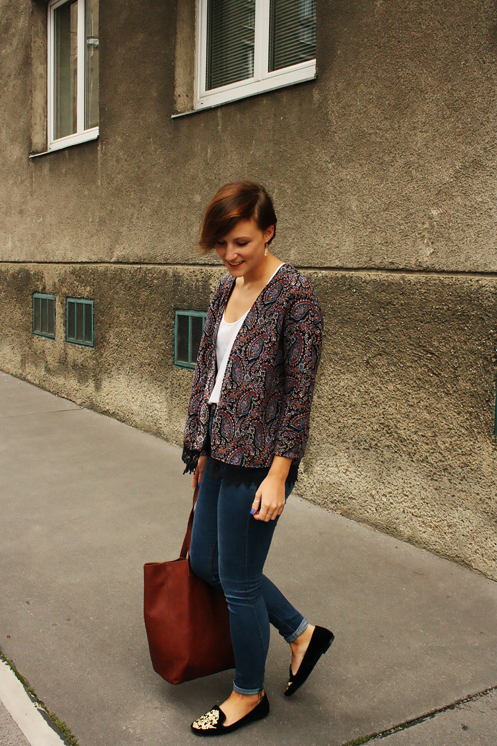 Ich hab tatsächlich genau zwei blue Jeans in meinem Schrank und nur eine davon trage ich in der Öffentlichkeit. Die andere sitzt richtig mies und ist deshalb nur für die eigenen vier Wände und den Supermarkt vorgesehen. Meine Lieblingsjeans habe ich mir vor über einem Jahr bei Zara gekauft und sie sitzt einfach wie angegossen und wird deshalb in der kälteren Jahreszeit fast täglich ausgeführt. Ein weißes Top dazu und schon hat man ein perfektes unkompliziertes Outfit. Mit Schuhen und Weste kann man dann jeden Tag anders variieren. Viel braucht man eben nicht um modisch glücklich zu sein und Hauptsache man fühlt sich wohl in der Kleidung.
