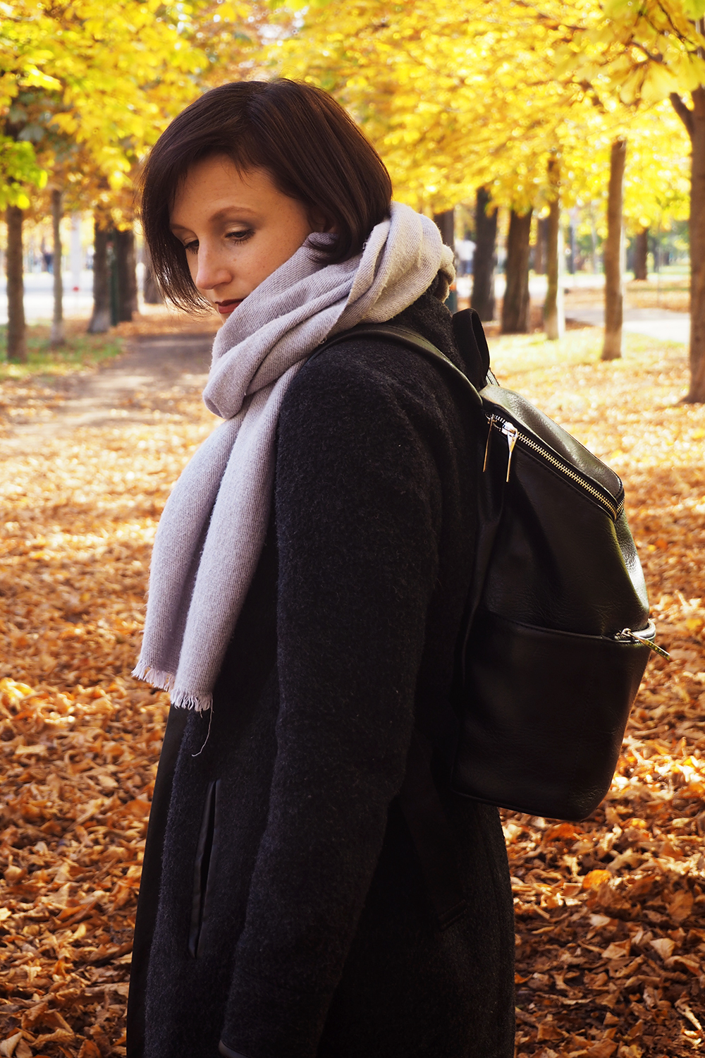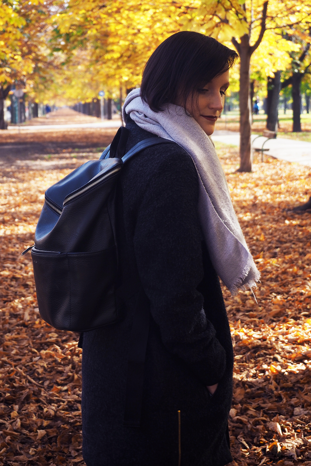 Und wie ich vorhin erwähnt habe; bei den vielen alten Kleidungsstücken, sollte zumindest ein neues Teil dabei sein. Dieses Mal trage ich die beste Investition, die ich im letzten halben Jahr getätigt habe: den Rucksack von Matt and Nat. Ich trage ihn täglich (ach, schon wieder so langweilig, nicht mal bei der Tasche kommt Abwechslung rein…) und empfinde ihn als das praktischste und modischste, was ich momentan besitze. In den kleinen Rucksack passt nämlich allerhand hinein. Neben meinem Laptop hab ich immer noch meine Trinkflasche und Lunchbox drinnen, die ich fast täglich benütze. Ihr müsst wissen, ich bin stets am Reisen zwischen dem einen Ende von Wien und dem Anderen, um bei meinem Freund zu sein. Das heißt, es muss gut gepackt werden und alle wichtigen Dinge muss ich immer bei mir tragen. Mit dem Rucksack kein Problem mehr und da er auch so kompakt ist, sitzt er auch perfekt und das Gewicht spürt man kaum auf dem Rücken. Noch dazu ist er vegan, aus hochwertigen Kunstleder mit einem Innenfutter aus 100% recyclten Plastikflaschen.