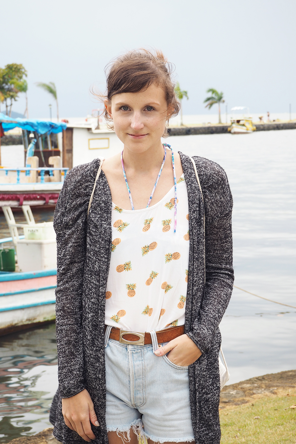 Wer erkennt die Hose? Ja genau, sie war Teil meines ersten richtigen Fairfashion Outfits, wurde aber nun für Brasilien abgeschnitten. Irgendwie hat mir die lange Version dann doch nicht so gut gefallen. Nun ist sie eigentlich meine Lieblingsshort hier geworden und ich zieh sie ständig an. Zusammen mit meinen Lieblingsananasshirt machten sie eine gute Figur meiner Meinung nach.