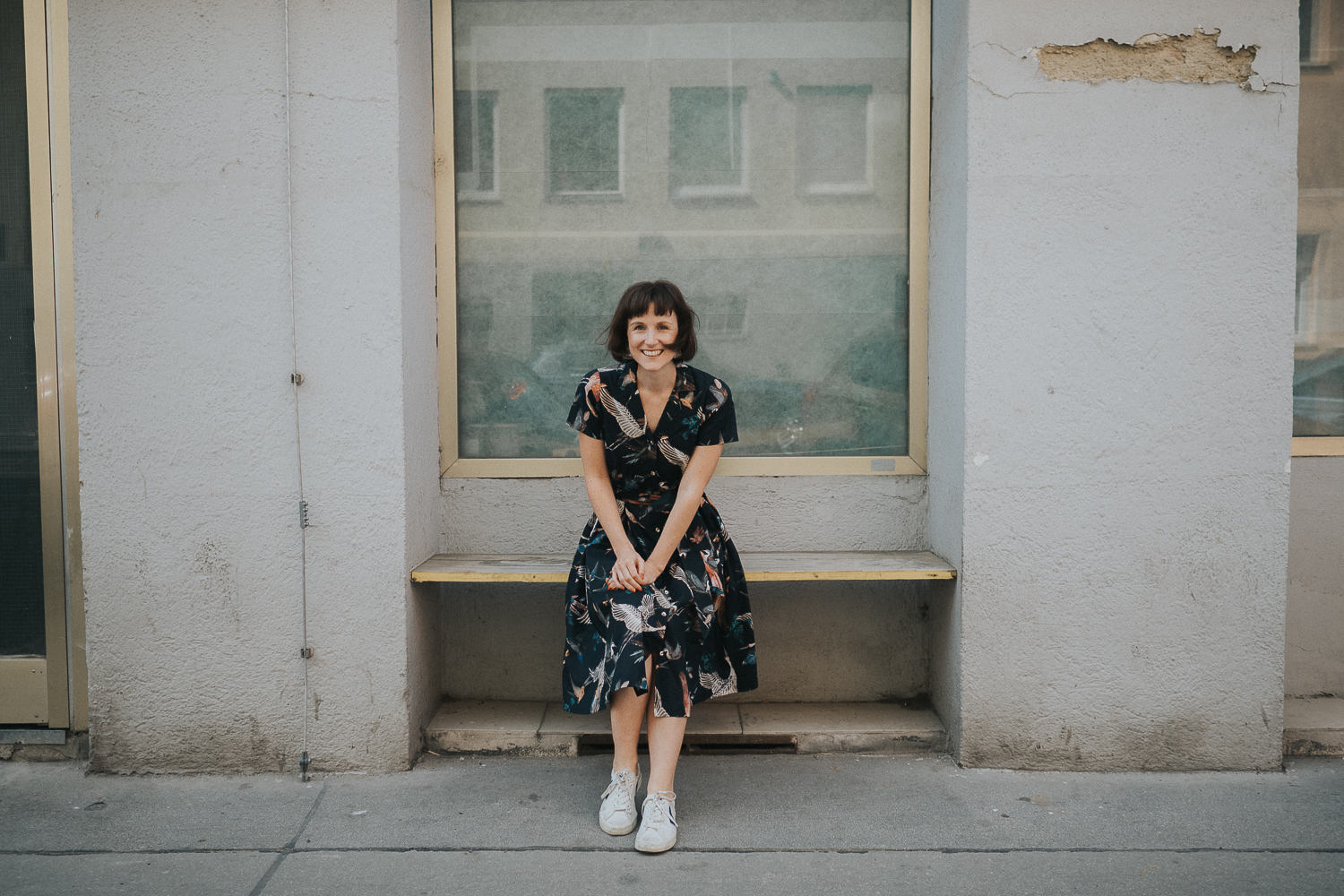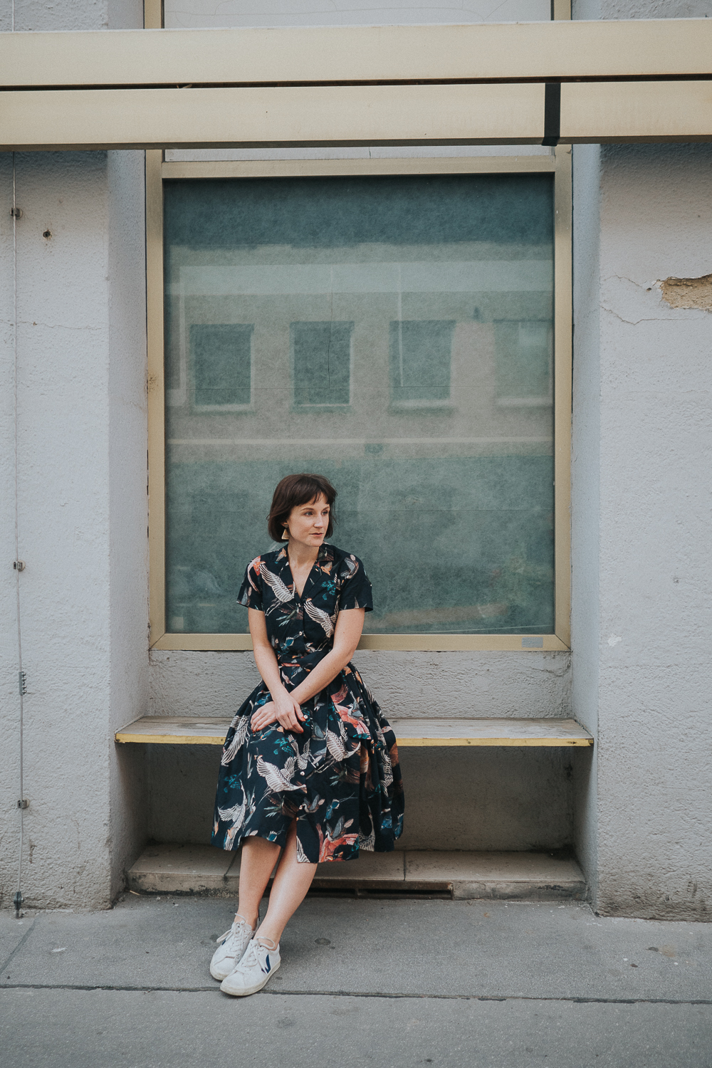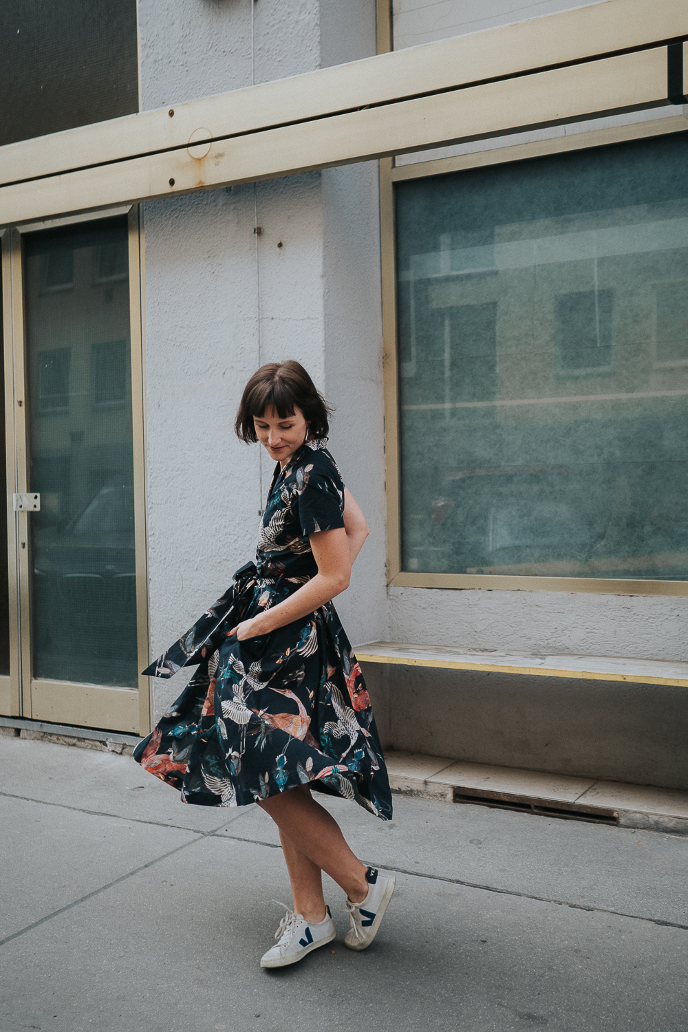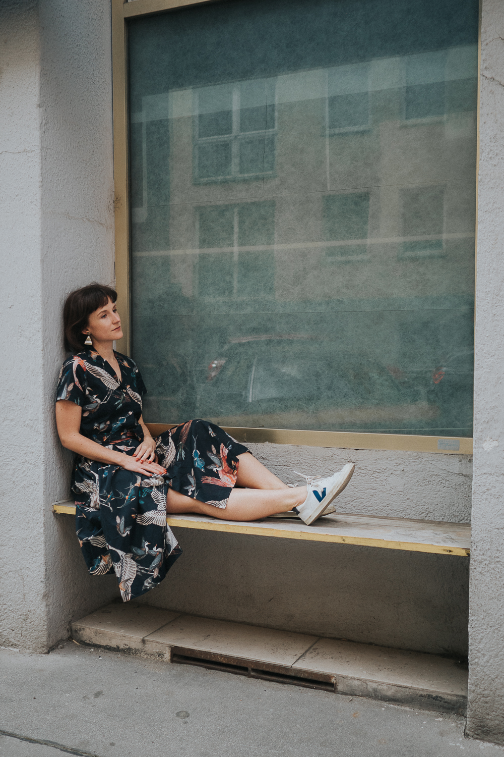 Hemdblusenkleid von Atelier Snow (Bio-Baumwolle und produziert in Österreich) // Sneaker von Veja (vegan und fair produziert) // Schmuck ist second hand