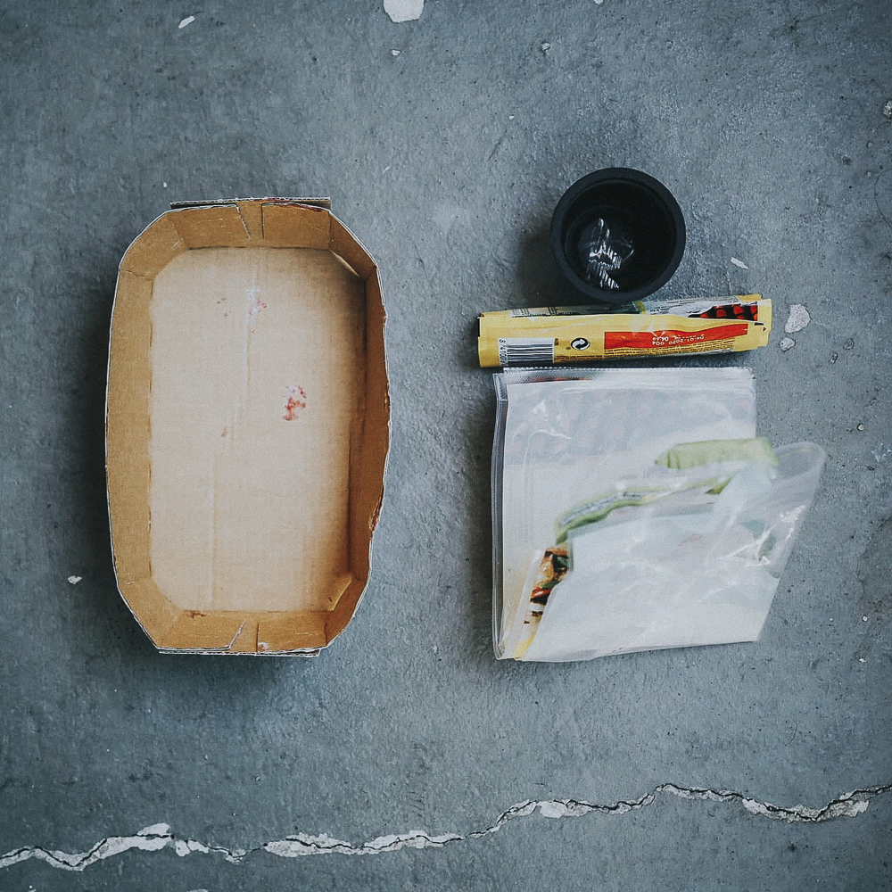 Was du brauchst: deinen vollen Restmüll-Eimer, einen Stift und einen Zettel.