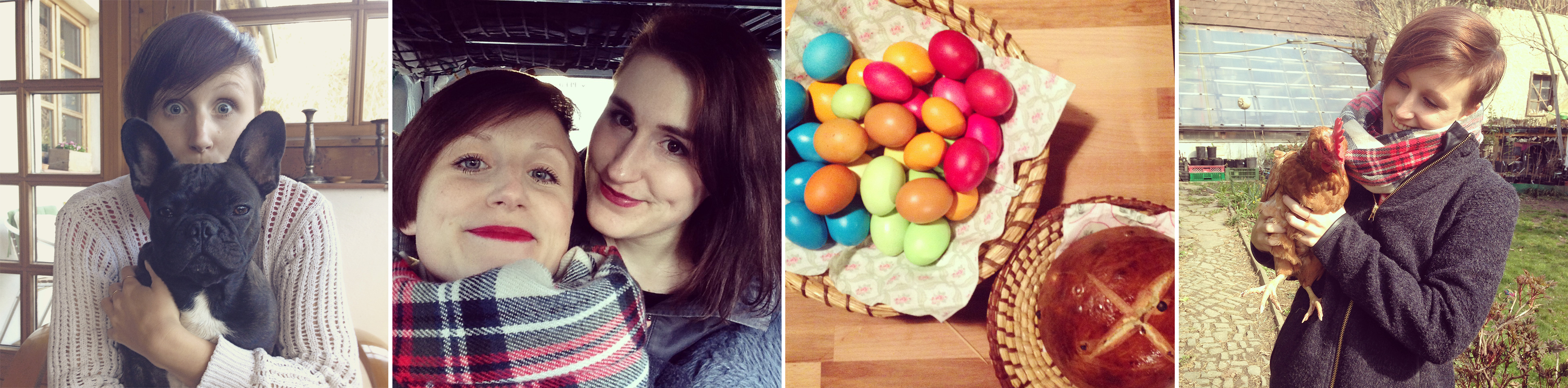 (1)Der April hat sehr ereignisreich mit Ostern und dem Geburtstag meiner Schwester begonnen. Deshalb ging es heim in die Steiermark um Hunde zu knuddeln, (2) meine Schwester zu feiern, (3)Ostereier zu Färben, Brot zu backen und (4)Hännen zu hoppern.
