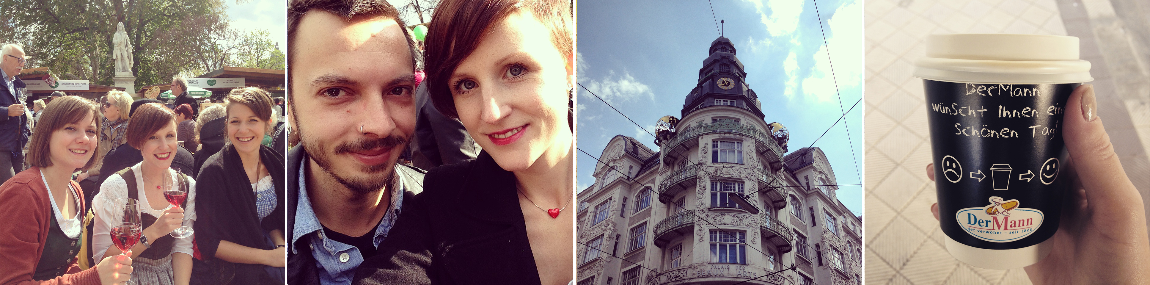 (17 und 18) Parallel fand auch das Steiermarkdorf am Wiener Rathausplatz satt. Dort mussten wir natürlich mit dabei sein und Tracht war auch Pflicht! (19) Bei einem Sonntagsspaziergang im eigenen Bezirk stößt man manchmal auf Gebäude, die einen ganz schön faszinieren. (20) Für einen kurzen und stressigen Aufenthalt in Salzburg, ging es um 7 Uhr früh zum Bahnhof, wo natürlich noch last Minute ein Kaffee gekauft werden musste.