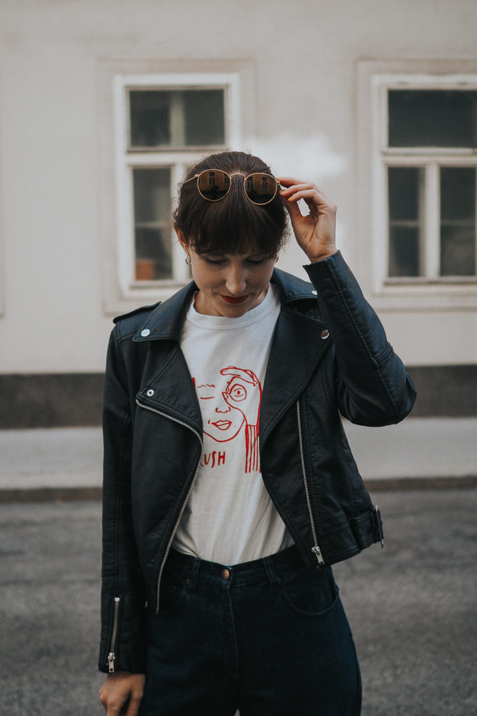 Bandshirt von „Crush“ // Chelsea Boots von Espril (vegan) // Rest second hand via Kleiderkreisel und Flohmarkt