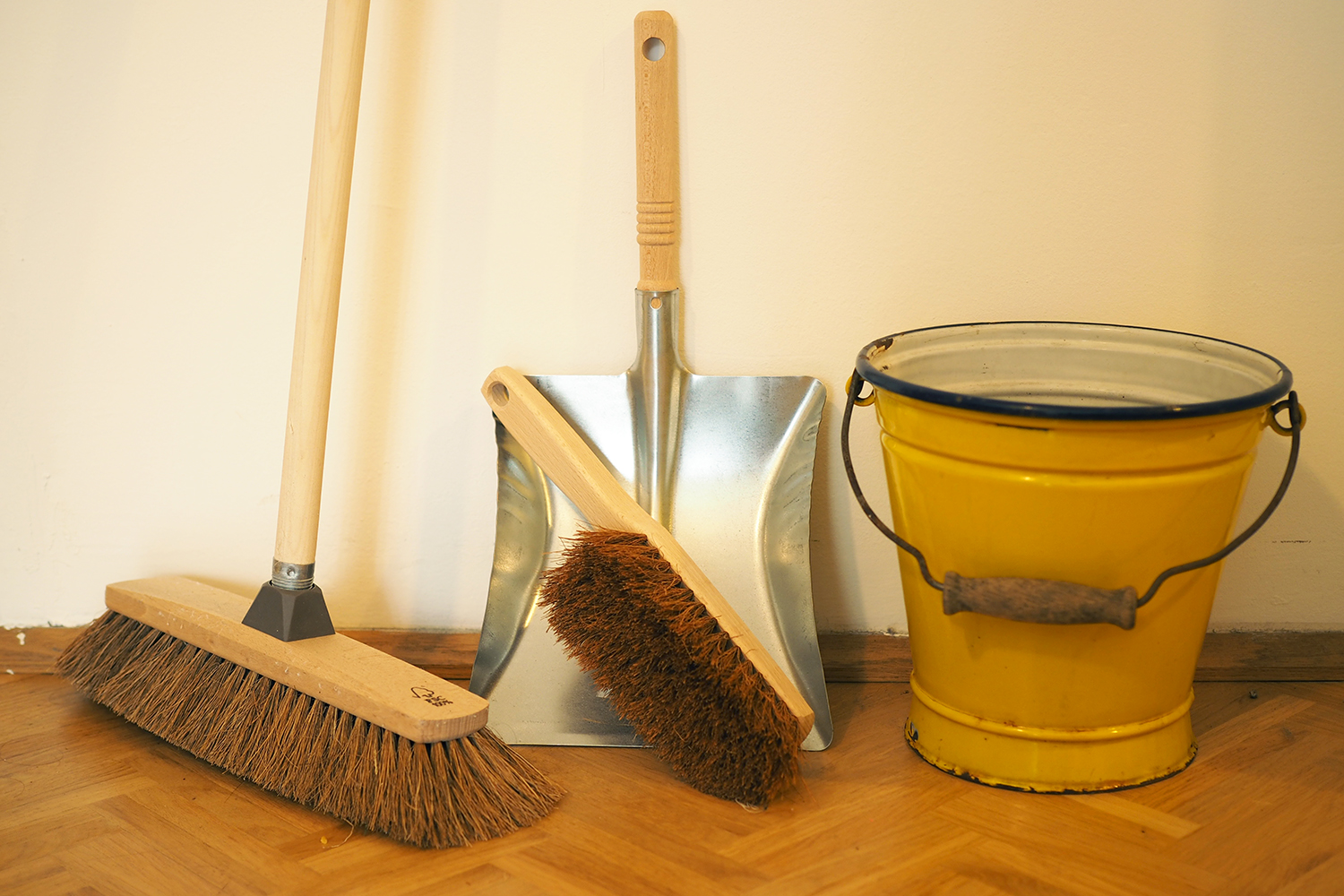 Eigentlich hatte ich mir das mit dem Putzen viel romantischer vorgestellt. Ich dachte „Das ist DIE Gelegenheit endlich selbst Putzmittel zu erzeugen“. Der Gedanke schwirrte mir zwar schon länger im Kopf herum, aber dass ich tatsächlich mal mit Natron und Waschsoda herum experimentierte kam irgendwie nie vor. Jetzt weiß ich: der Umzug ist eine schlechte Gelegenheit dazu. Im Prinzip muss alles schnell gehen und man möchte sich auf gewisse Dinge verlassen können, wie zum Beispiel, dass das Klo tatsächlich beim ersten Benützen auch hygienisch rein ist. Ich möchte nicht sagen, dass dies nicht möglich ist mit selbst gemachtem Putzmittel. Aber ich hätte in dieser Phase einfach keine Geduld gehabt mich damit ernsthaft auseinander zu setzen. Also musste eine Alternative her und zwar die, die ich eh schon immer gewählt habe – umweltfreundliche Putzmittel von Bipa, DM und co. Hier gibt es mittlerweile sowieso eine riesige Auswahl. Vor allem die BI Good Produkte bei Bipa sind sogar teilweise wiederbefüllbar. Zum Putzen an sich habe ich Putztücher aus nachwachsende Ressourcen gekauft (gibt es bei DM), diese kann man gut wiederverwenden, wenn man sie bei 60° in der Waschmaschine wäscht. Alte kaputte T-Shirts dienten uns als Putztücher. Natürlich musste auch ein neuer Besen, Schaufel und so weiter besorgt werden. Wir hatten das Glück, dass es mittlerweile bei Interspar eine riesen große Auswahl an Putzutensilien gibt, so dass man sogar welche aus Holz bekommt. Wir konnten uns zwischen Pferdehaar, Naturfaser und Kokosfasern als Borsten entscheiden und wählten das letztere. Schließlich war mein aller größter Vorsatz für die neue Wohnung, dass kein Plastik ihren Weg hinein findet!