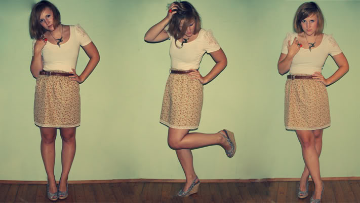 Shirt und Gürtel von H&M; Kette von Accessorize; Ring von Mango; Rock aus London; Wedges von Bershka LOVE MY OUTFIT Gestern gings ganz spontan mit Schwester zum Shoppen, in der Hoffnung dass ich doch noch was schönes im Ausverkauf finden würde. Aber prinzipiell gab es nur noch eigenartige Größen und Fetzen die einfach nur noch billig aussahen, sowohl bei Bershka als auch bei Zara. Trotzdem…
