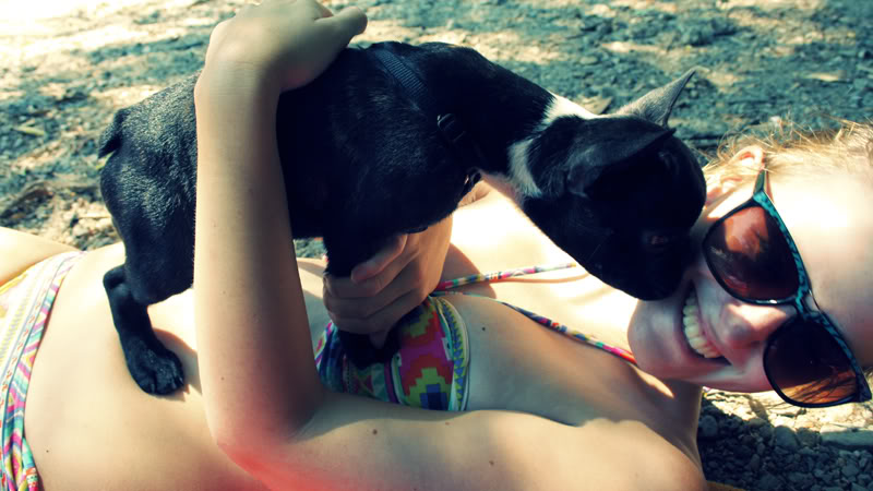 Den heutigen Tag habe ich ganz relaxed mit Schwester und ihrem Französischen Bulldogge Welpen Muffin am See verbracht. Das war wieder einmal bitter notwendig. Am Strand herum liegen und Zeitschriften lesen und dann ins kühle Nass mit Muffin plantschen. Besser kann ein Tag nicht sein……