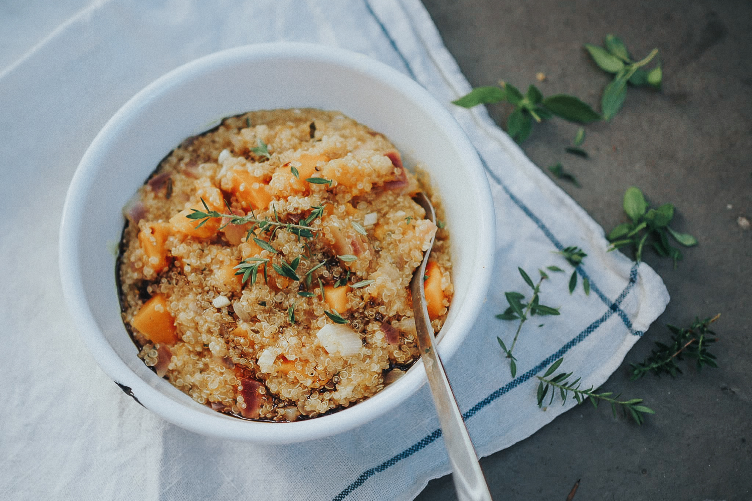 Momentan bekommen wir wieder viel Kürbis im Gemüsekistl. Vielleicht ein Anzeichen dafür, dass der Herbst nicht mehr all zu weit weg ist? Kürbis geht immer! Und wisst ihr, was ich auch einfach immer essen könnte? Risotto! Und damit das mit dem Reis nicht zu einseitig wird, machen wir das Risotto eben einfach mit Quinoa. Der ist nämlich oben drein auch noch ein hervorragender Protein-Lieferant und…