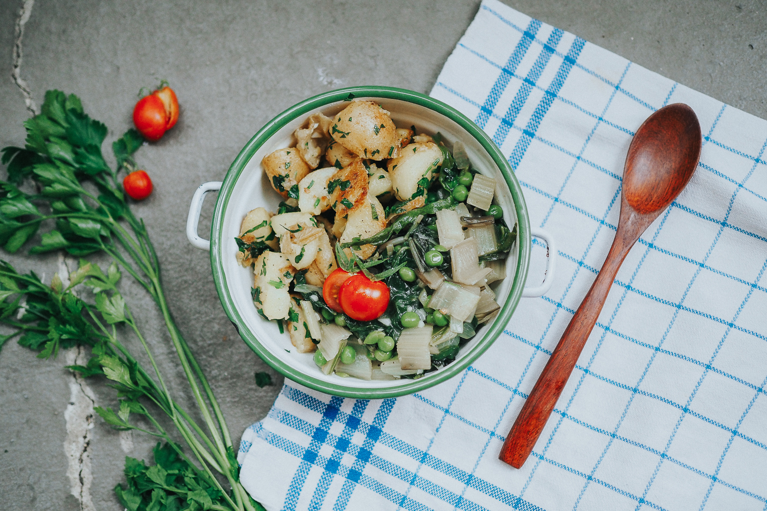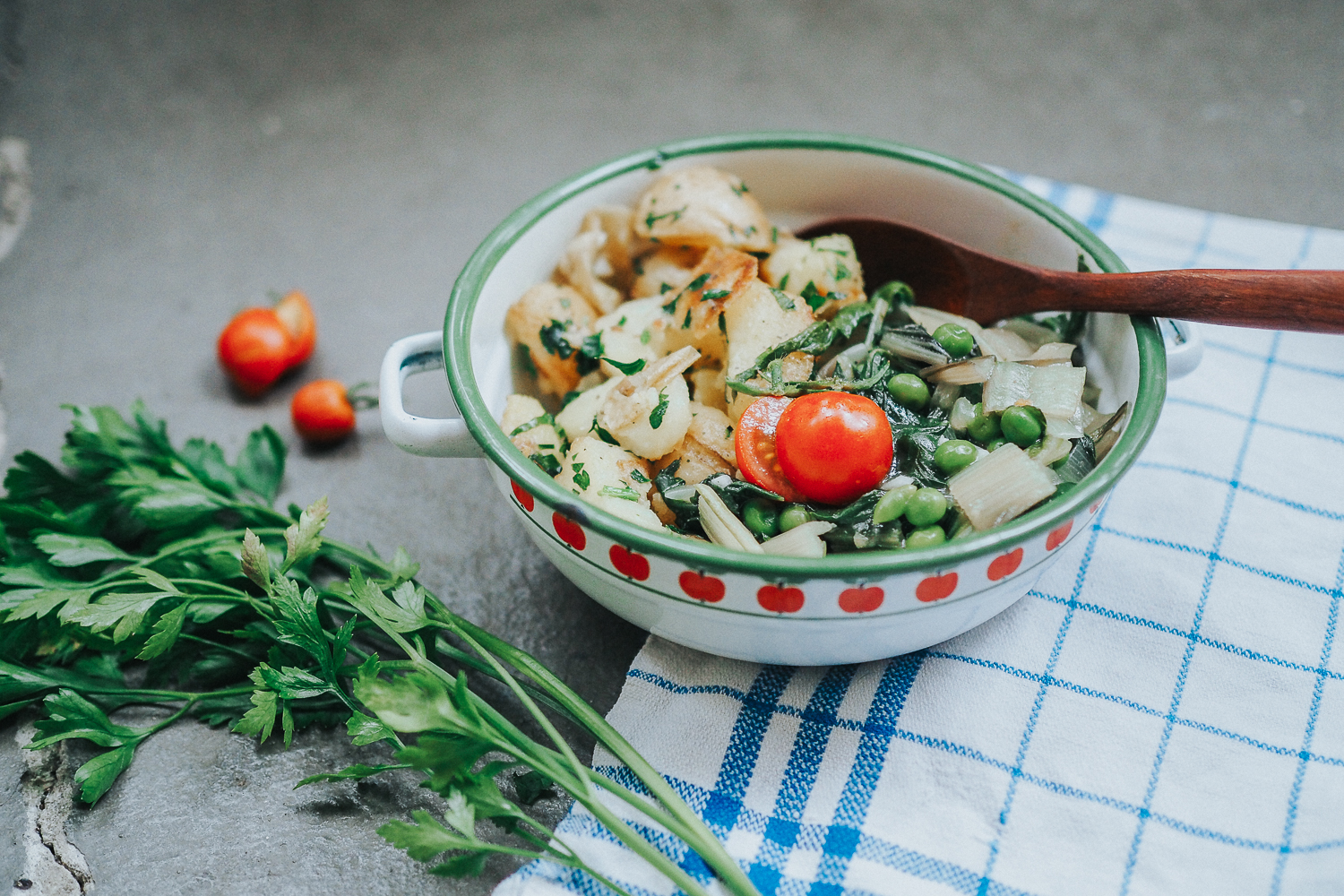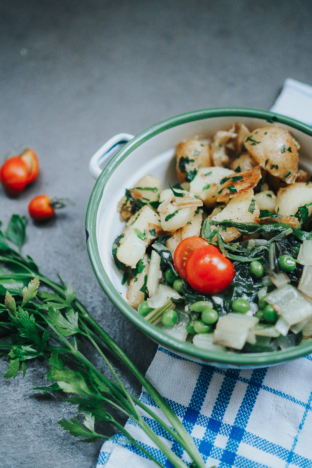 Erst letztens habe ich eines meiner liebsten Gerichte für den Blog gekocht: das Ritschert. Heute gibt’s ein Rezept, dass ich von meiner Mutter gelernt habe und als Kind absolut geliebt habe. Nur meine Mutter hat es immer mit Kochsalat gemacht. Da ich eigentlich nie Kochsalat im Supermarkt gefunden habe, habe ich angefangen das Rezept stattdessen mit Mangold zu kochen. Schmeckt genauso gut und ist enorm gesund!