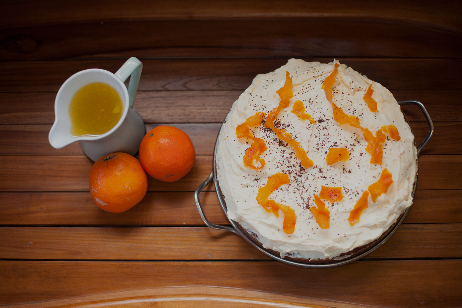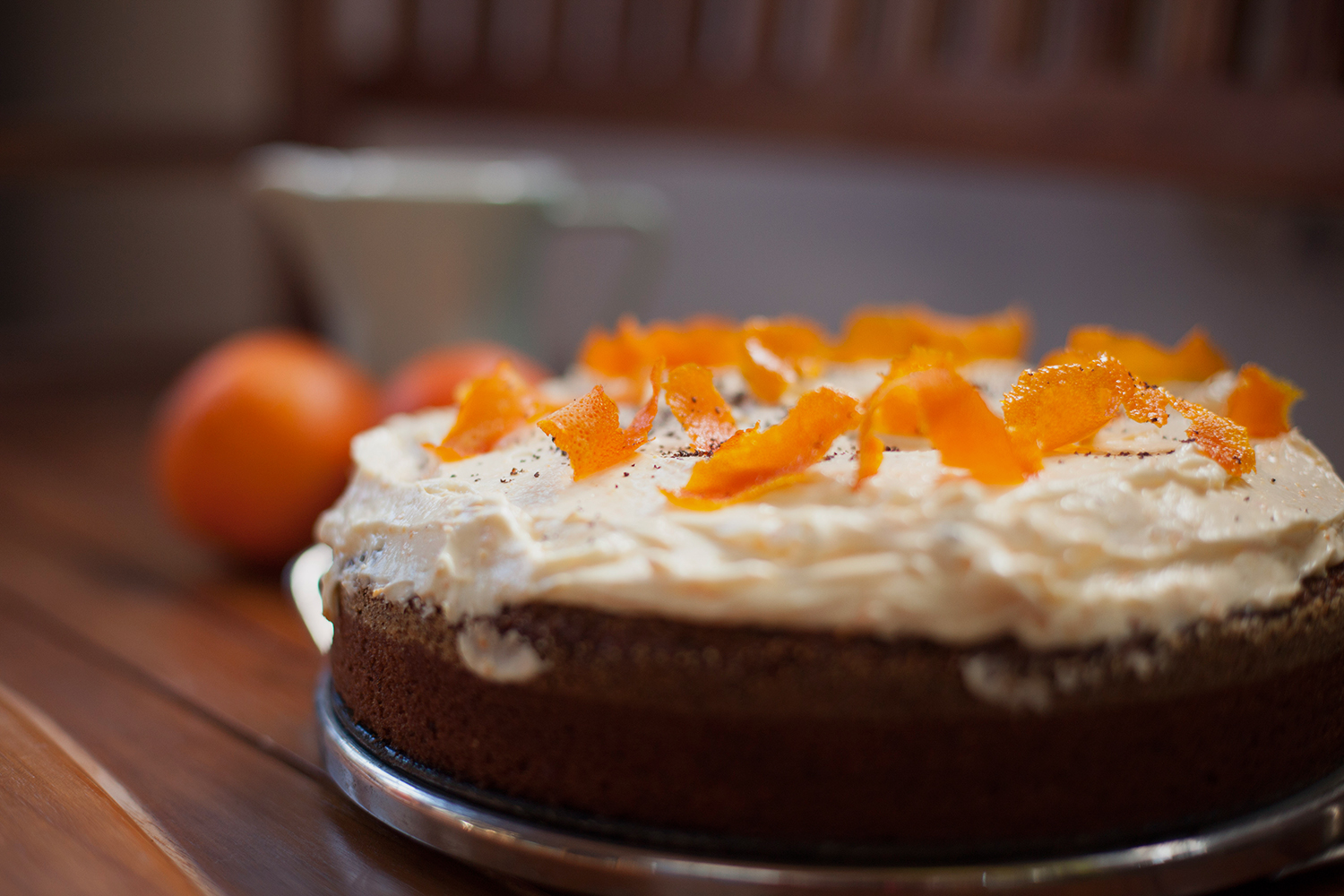 Orangen-Mohn-Torte mit Frichkäsetopping und Orangensirup