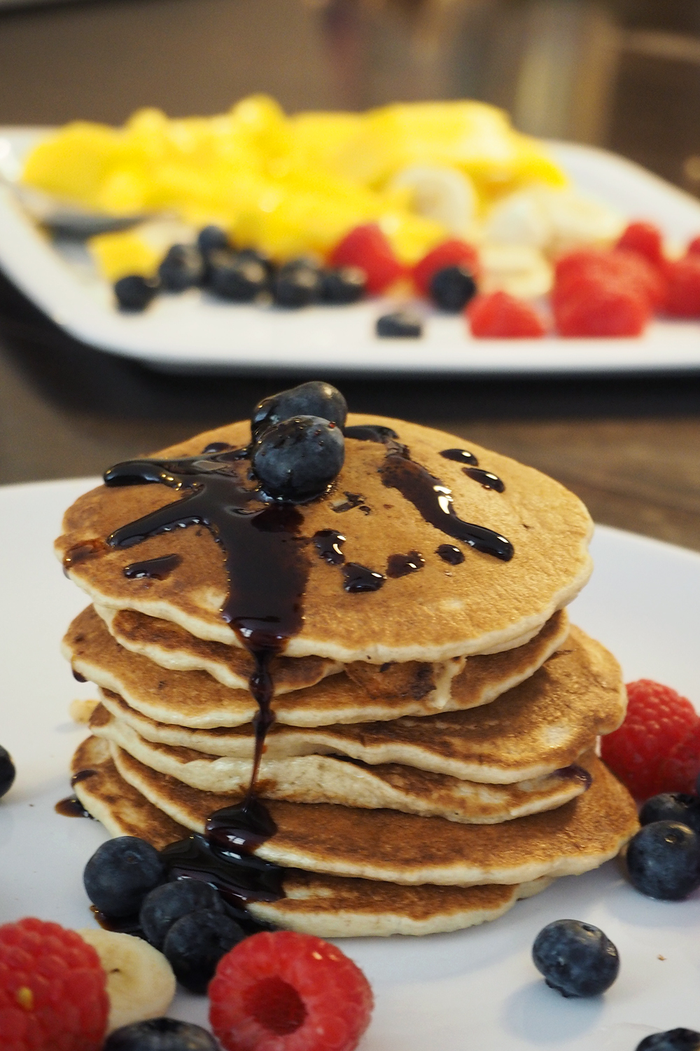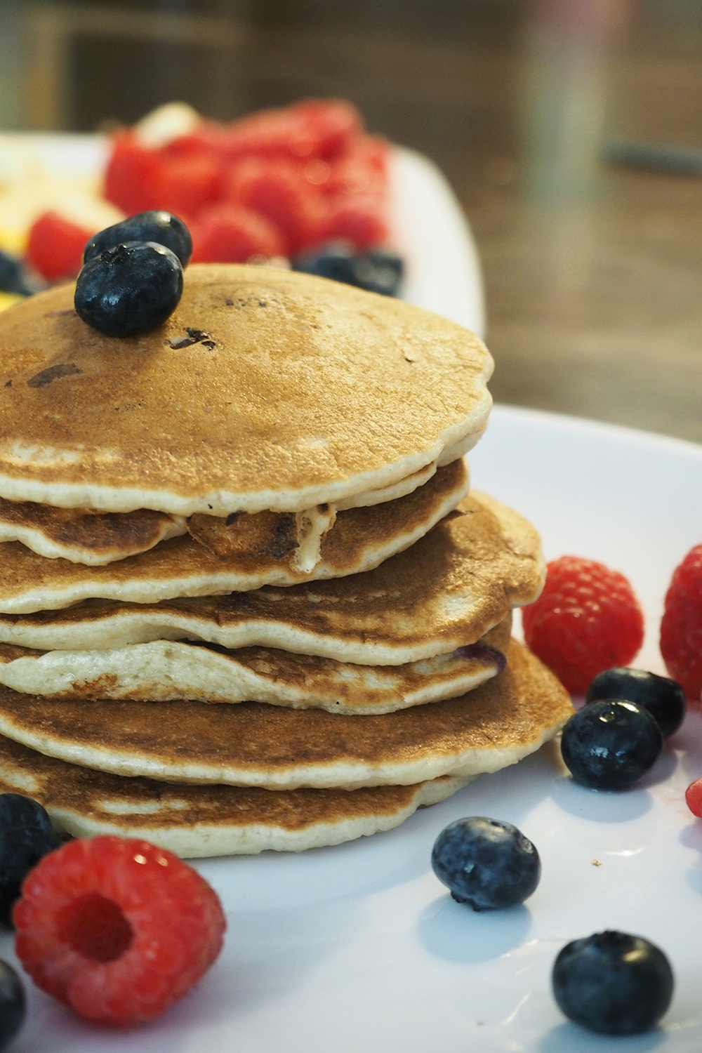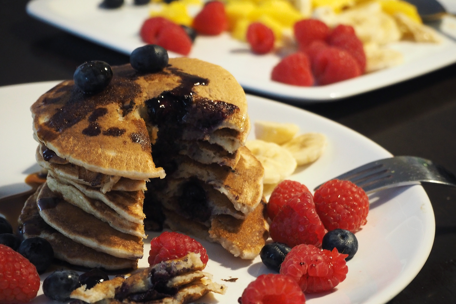 Frühstück ist nicht nur die wichtigste Mahlzeit des Tages, sondern meiner Meinung nach auch die beste. Richtig gut ist das Frühstück natürlich, wenn man genug Zeit hat und nicht in fünf Minuten alles versucht hinunter zu bekommen. Deshalb nehme ich mir eigentlich immer genug Zeit in der Früh, auch wenn ich schon um 8 Uhr in der Arbeit sein muss. Die Zeit, dass ich mir selbst Pancakes mache habe ich trotzdem irgendwie nur selten, oder vielleicht fehlt mir dann einfach die Motivation. Es ist ein Prozess der etwas länger dauert, will man doch jeden einzelnen Fladen perfekt raus braten und dabei läuft einem schon das Wasser im Mund zusammen. Erst letztens hat mich früh morgens wieder die Motivation gepackt und wir haben köstliche vegane Pancakes mit Heidelbeeren gemacht. Geht es nach mir, brauchen Pfannkuchen nicht immer unbedingt Kuhmilch oder sogar ein Ei. Meiner Meinung nach erkennt man den Unterschied zwischen „normalen“ und veganen Pancakes überhaupt nicht. Also warum nicht auch mal ohne? 😉