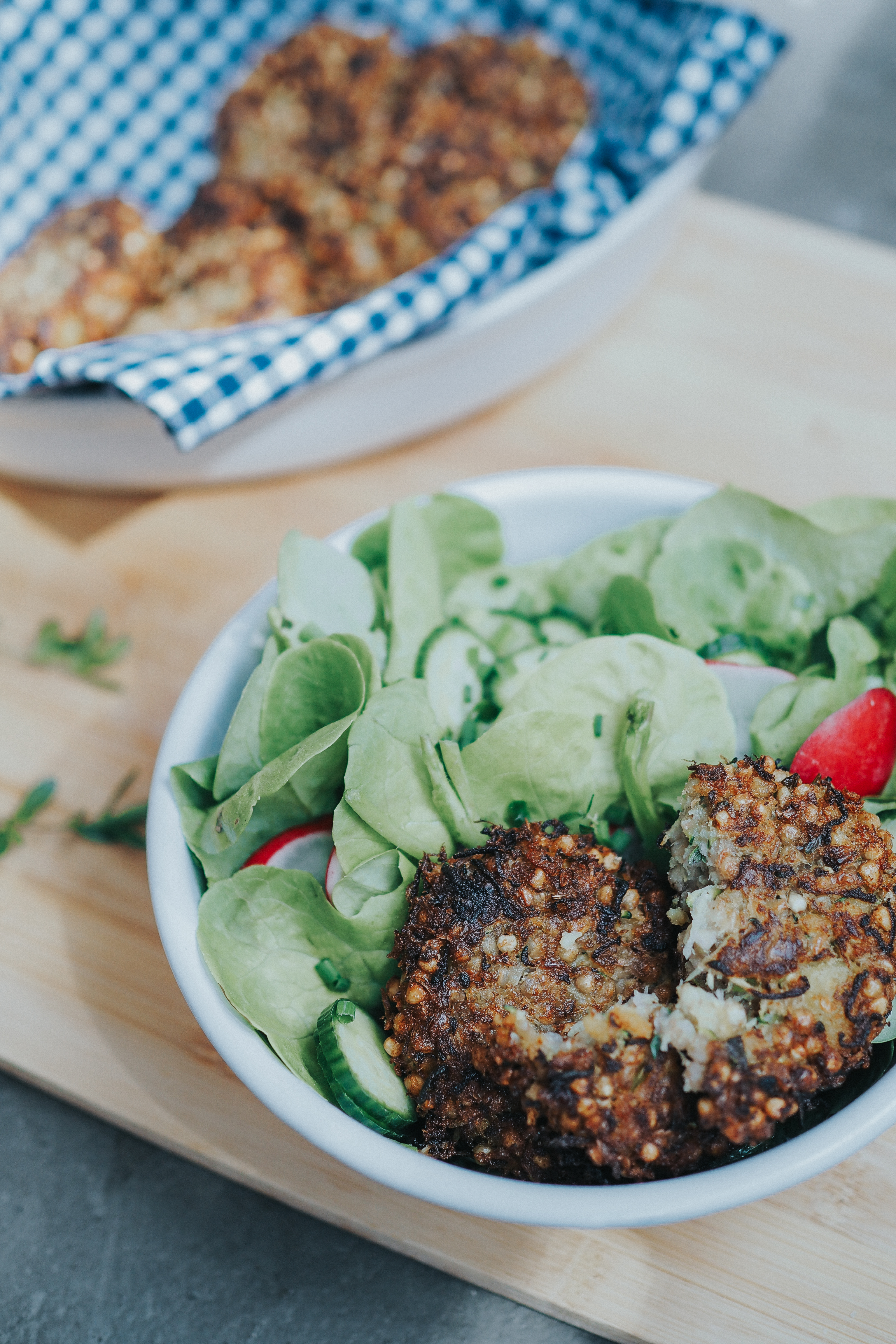 Wichtig ist, dass man die Flüssigkeit von Gemüse und Buchweizen weg bekommt, sonst fallen sie beim frittieren leider auseinander. Entweder man drückt die Masse gut aus, oder man benötigt eben mehr von Mehl oder Brösel. Bei der Kartoffel ist es wichtig, dass sie ganz weich gekocht ist (am besten eine mehlige Kartoffel dafür wählen), damit die Masse dadurch gut zusammen gehalten wird.