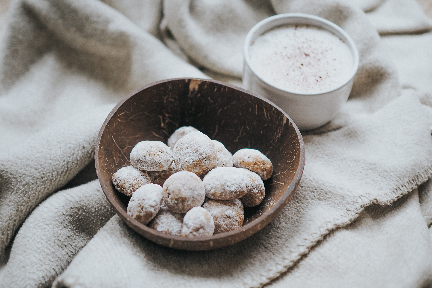Schnelle, einfache und köstliche vegane Kekse mussten her. Da war ich froh, als mir meine Arbeitskollegin ein Rezept für schwedische Kokos-Kekse in die Hand drückte. Hirschhornsalz, welches traditionell als Backtriebmittel verwendet wurde, ersetzte ich einfach mal mit Natron, damit die Kekse auch wirklich vegan sind. Außerdem wandelte ich das Mehl noch nach meinem Belieben um und versuchte mit den schwedischen Maßeinheiten klar zu kommen. Mit Erfolg, die Dinkel-Kokos-Knöpfe haben einen buttrigen Geschmack und erinnern mich stark an die Haferkekse vom Möbel-Schweden, die ich so sehr liebe, nur eben hier mit einer kleinen Kokos-Note. Perfekt für das vegane Weihnachtsfest!