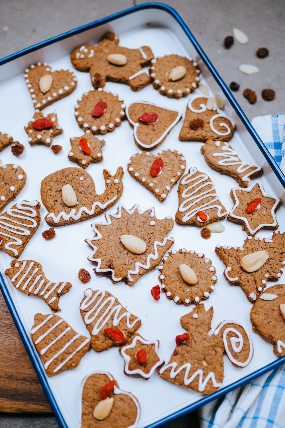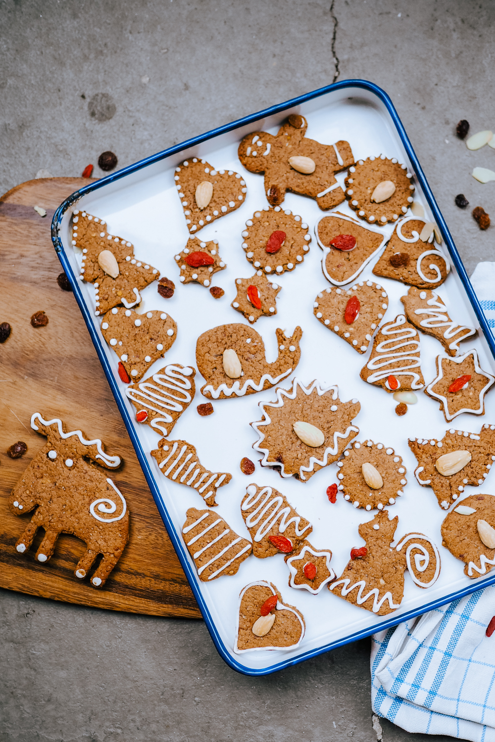 In der Vorweihnachtszeit freue ich mich immer am aller meisten aufs Kekse backen. Früher dachte ich immer, als Veganerin müsse ich Kompromisse eingehen, Ausnahmen machen oder würde eben nicht in den Geschmack von köstlichen Weihnachtskeksen kommen. Nun backe ich seit vier Jahren vegane Kekse und es macht mir große Freude neue Kreationen zu finden und die Begeisterung zu sehen, wenn ich die Kekse verschenke. Ein absoluter Klassiker unter den Weihnachtskeksen sind Lebkuchen. Seit fast 10 Jahren habe ich immer dasselbe Rezept gebacken mit Eier, Butter und Honig. Doch vor einigen Jahren habe ich das Rezept dann so umgewandelt, dass es eben auch vegan ist und genauso köstlich, wenn nicht sogar besser, schmeckt.