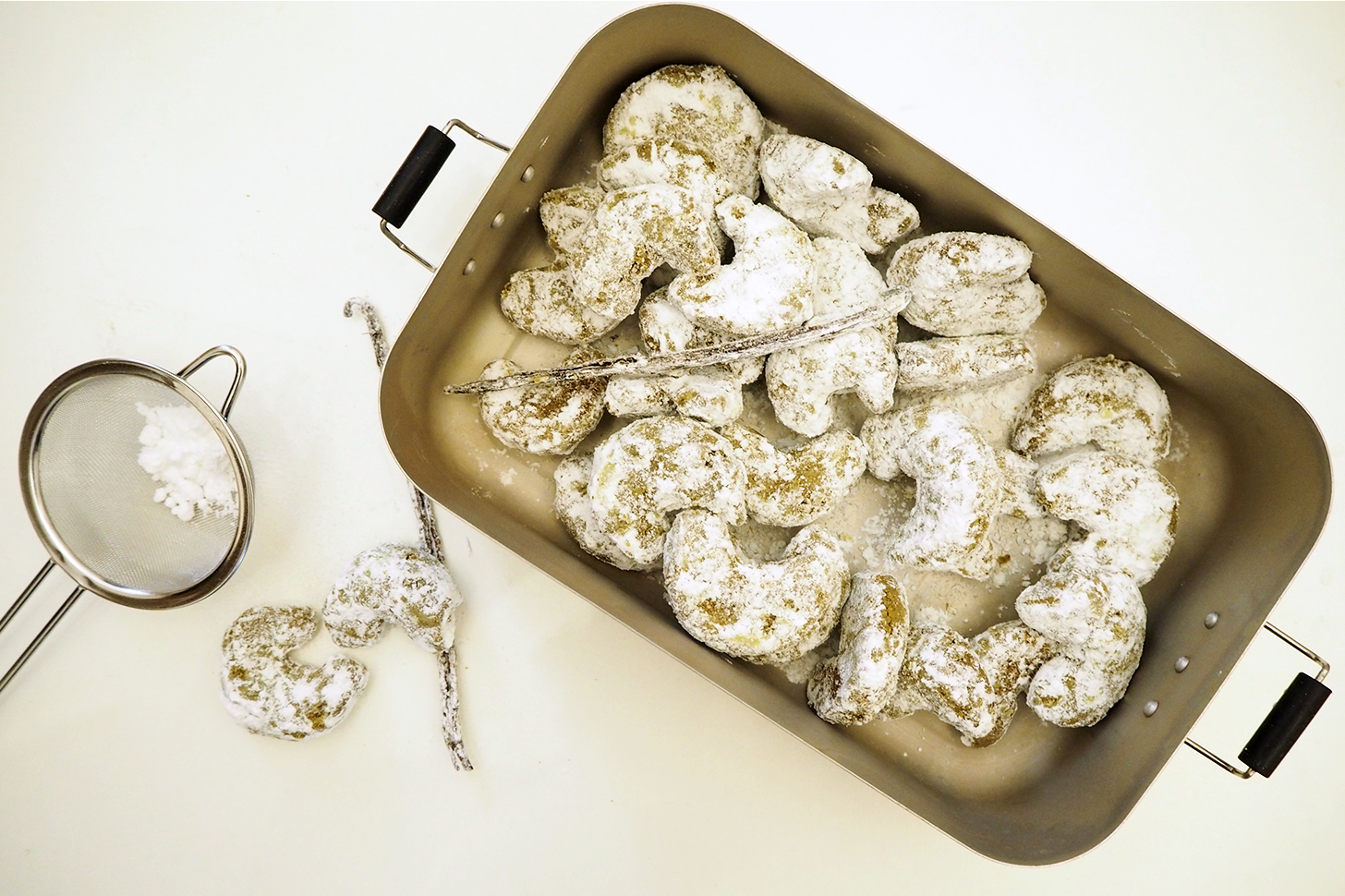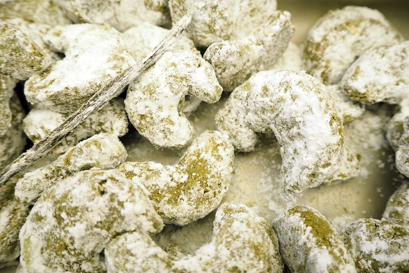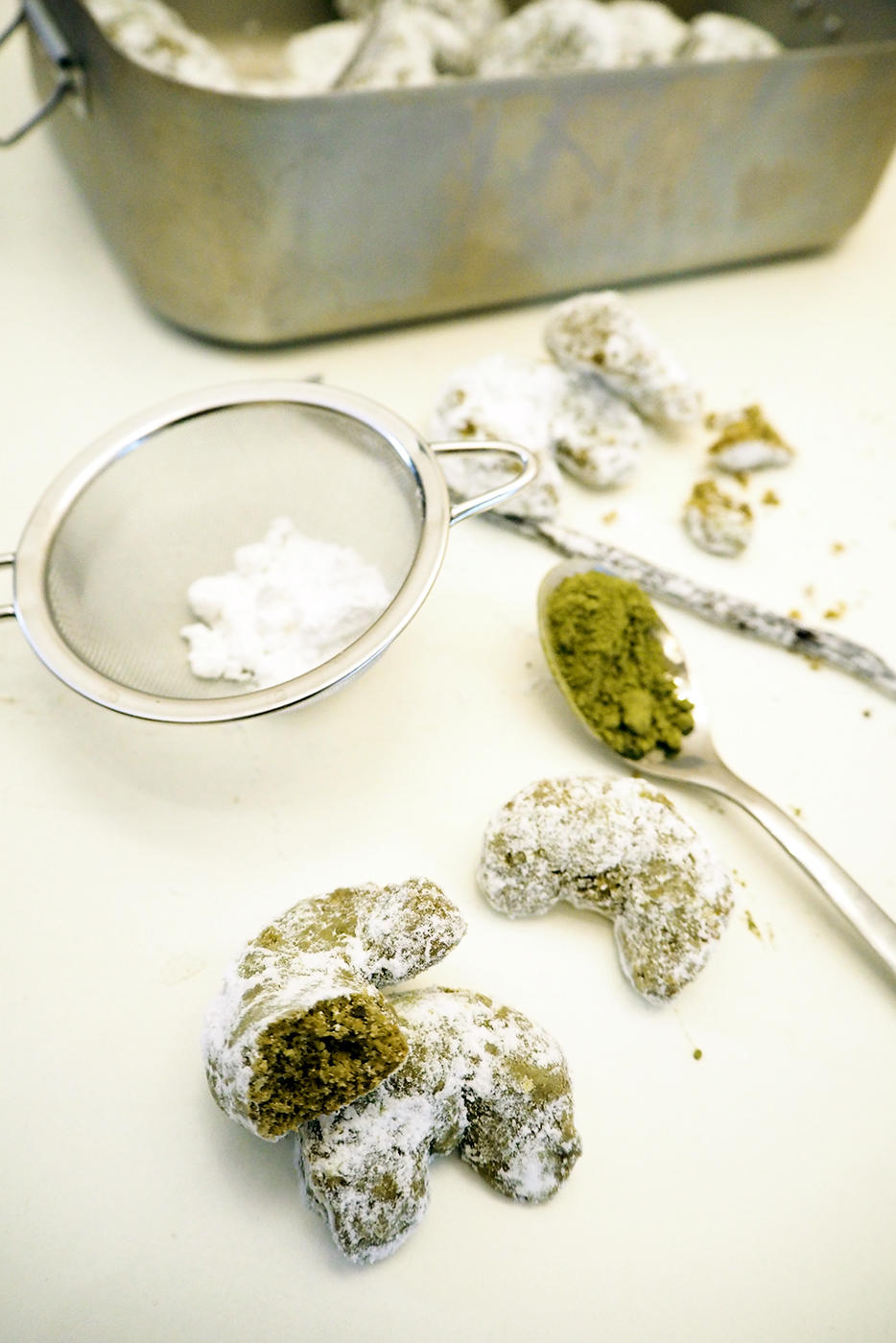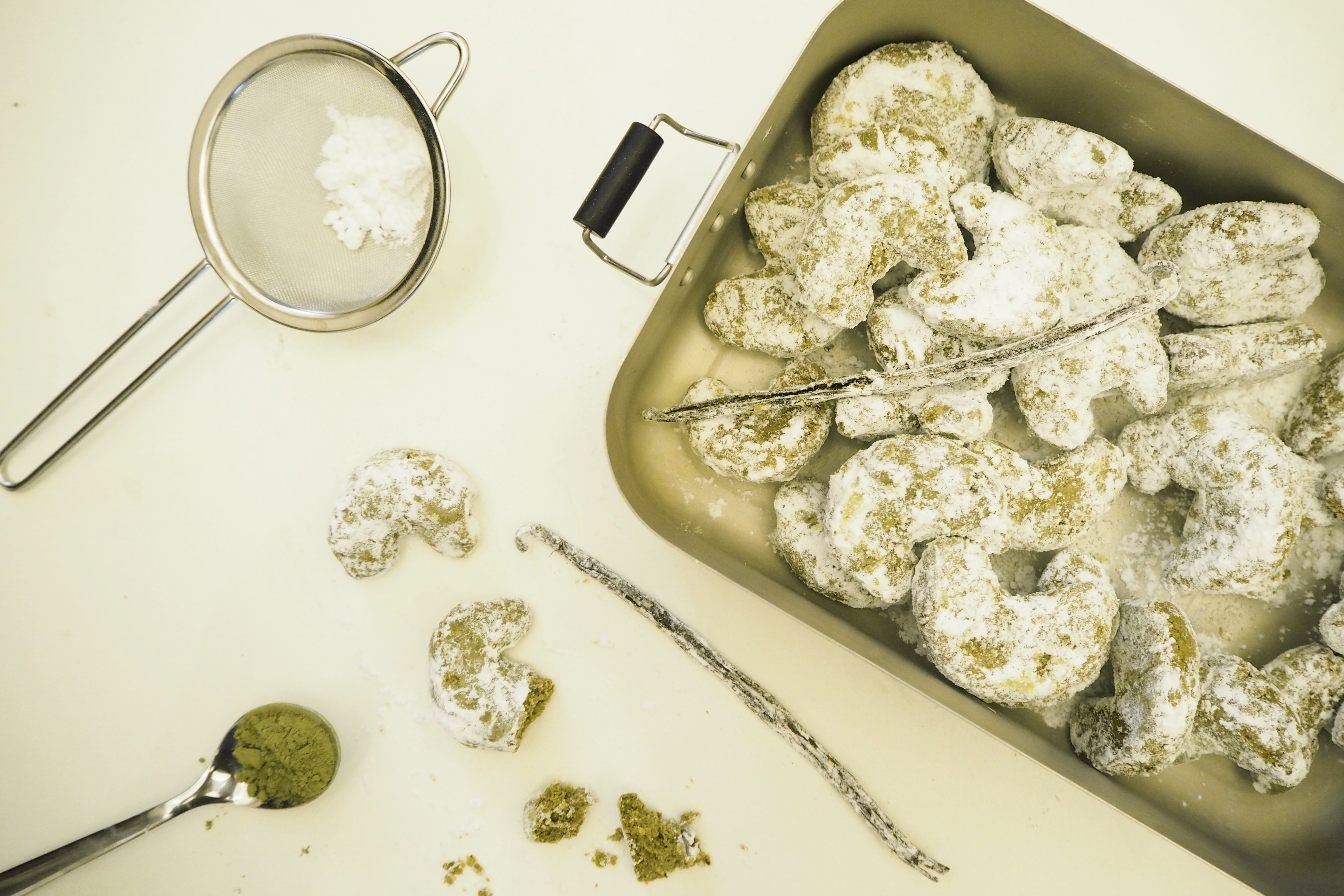 Ich bin ein großer Vanillekipferl-Fan, vor allem von denen von meiner Oma. Selbst wage ich mich allerdings nie an die klassische Variation heran. Letztes Jahr habe ich zum Beispiel Kübriskern-Kipferl gemacht, die sind aber leider total langweilig geworden. Von den Matcha Kipferl bin ich wirklich begeistert und da musste ich wirklich aufpassen, dass ich nicht alle auf einmal weg esse.