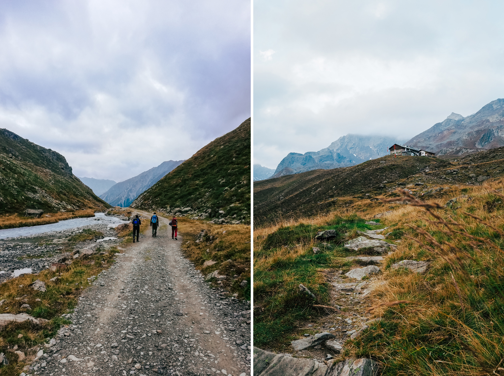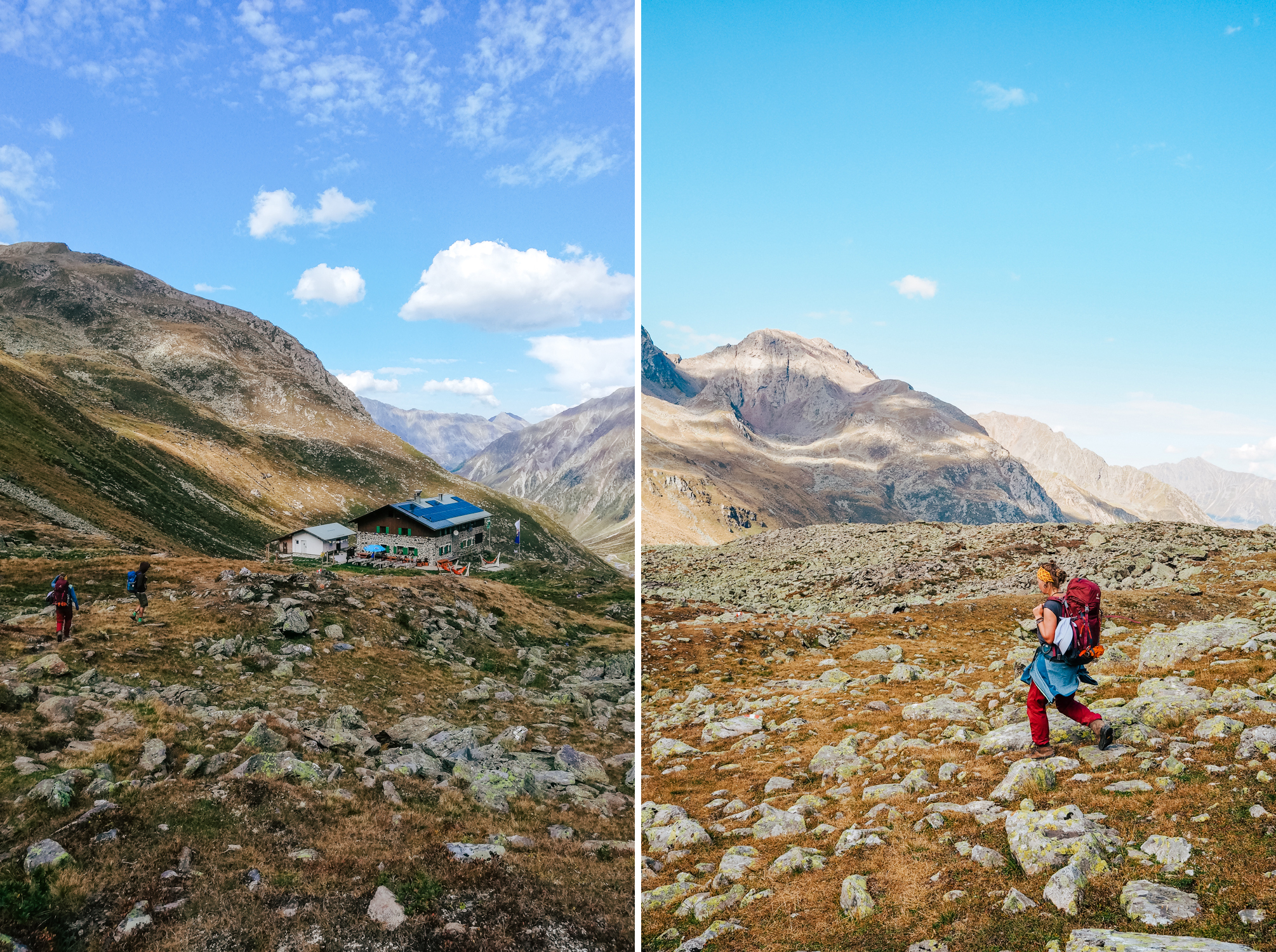 Erschöpft unten angekommen, konnten wir die Pforzheimerhütte schon in der Ferne sichten. Es ging noch ein wenig bergab, dann wieder bergauf und schließlich erreichten wir die Pforzheimerhütte (2289) gegen 16 Uhr.