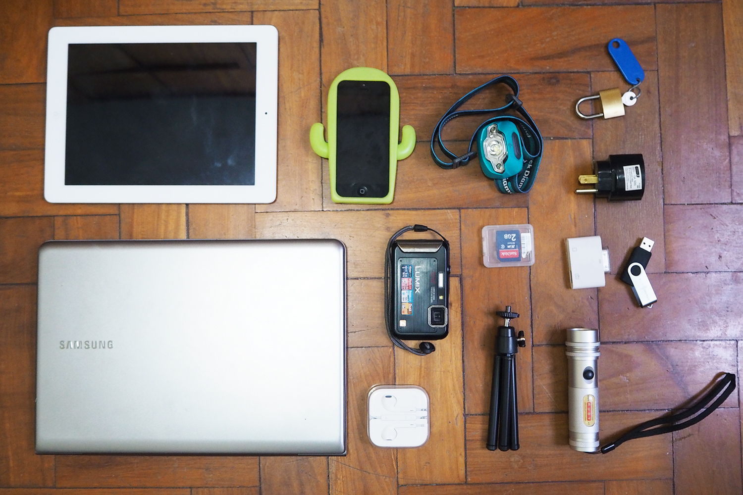 Elektronische Geräte dürfen natürlich auch nicht fehlen. Diese nehmen natürlich extra viel Platz weg und müssen Hauptsächlich im Handgepäck mitgeführt werden, weil die Wahrscheinlichkeit, dass sie kaputt werden, einfach viel zu groß ist. Bei mir musste der Laptop auf jeden Fall mit, den brauche ich ja schließlich auch für die Uni, und von meinem Ipad konnte ich mich auch schlecht trennen. Dieses finde ich vor allem bei Kurztrips immer sehr praktisch. Passend dazu habe ich mir auch einen Adapter besorgt, mit dem ich Fotos direkt über die SD-Card aufs Ipad spielen kann. Zusätzlich zu meiner Olympus Pen (mit der ich diese Fotos geschossen habe), habe ich mir eine kleine Digitalkamera die Wasserresistenz ist, mitgenommen, die darf dann meistens mit an den Strand. Für die Kamera hab ich dann auch noch ein kleines Stativ mit dabei, dass ich bis dato zwar noch nicht verwendet habe, aber Platz nimmt es auch nicht viel weg. Taschenlampen hatte ich gleich zwei mit dabei (fragt mich nicht warum), eine ist auf Reisen auf jeden Fall immer von Vorteil, man weiß ja nie in was für Situationen man so kommen kann…