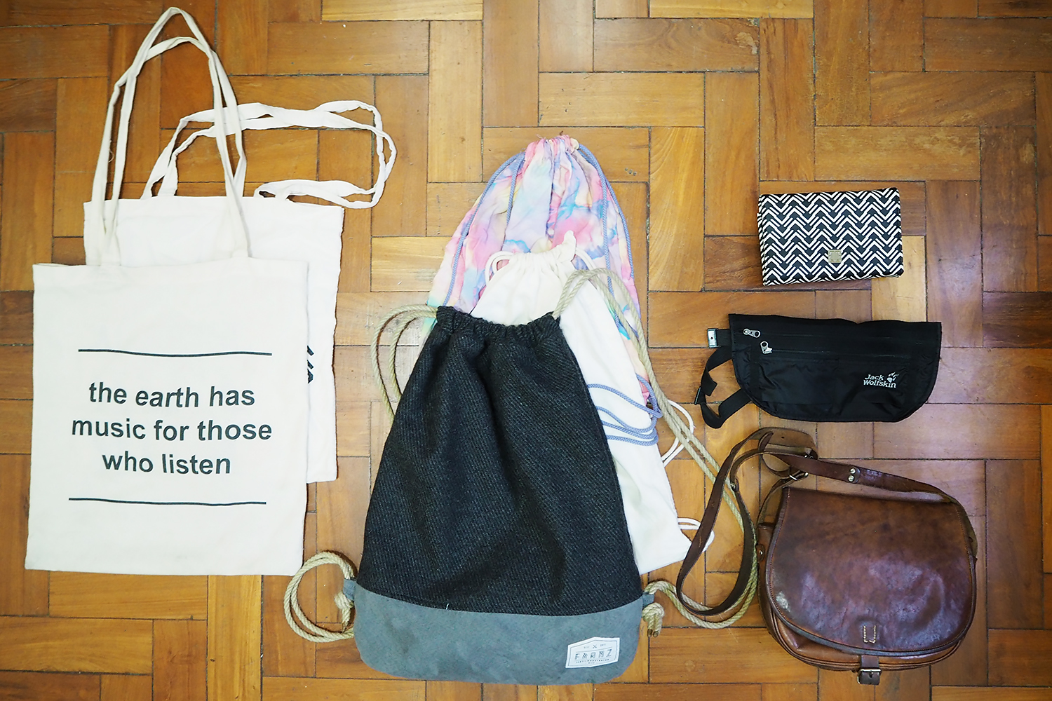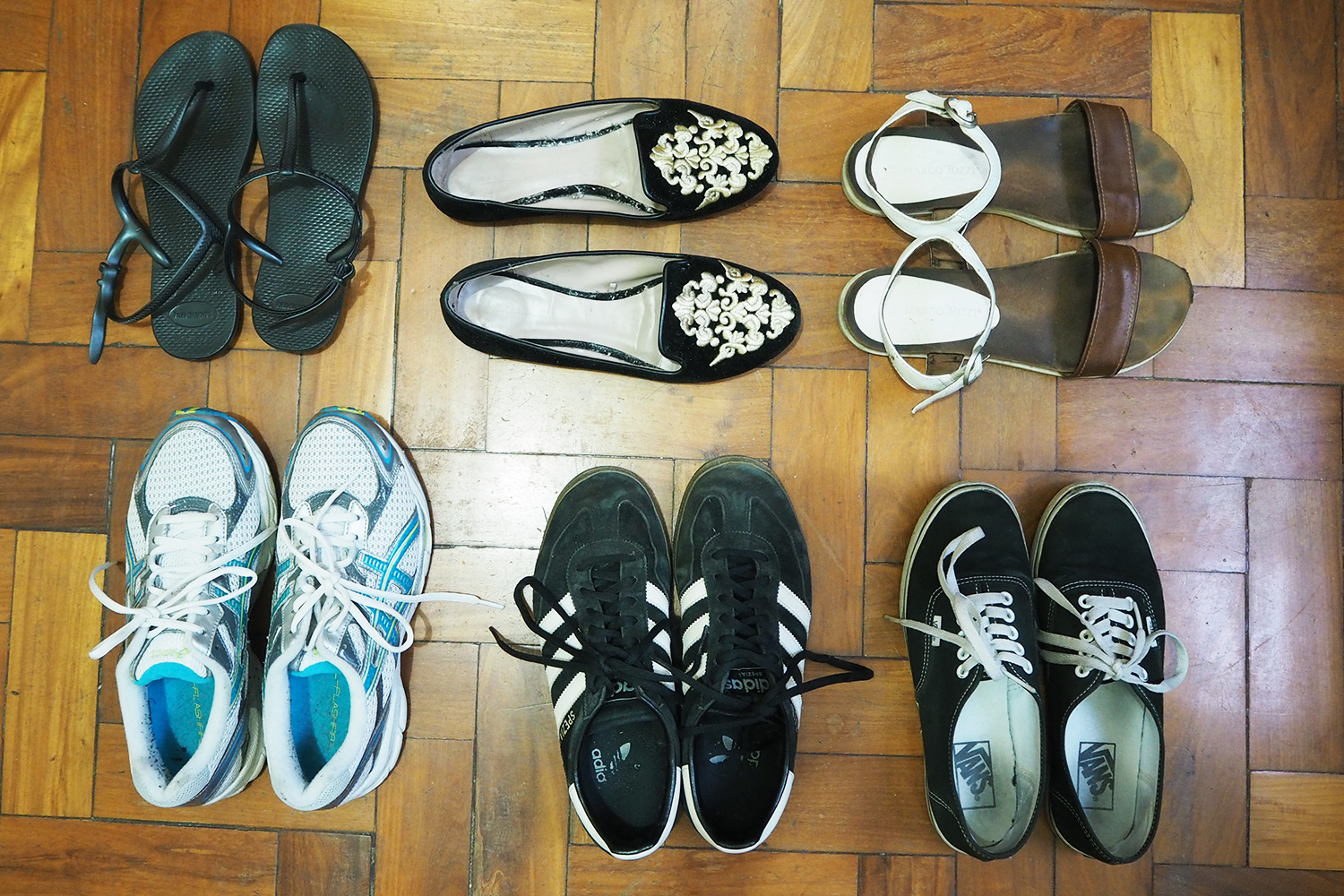 Weitere Taschen dürfen natürlich auch nicht fehlen und da habe ich mich recht begrenz gehalten. Es kam eigentlich nur eine kleine Umhängetasche aus Leder mit, die mir schon sehr viel treue Dienste bei anderen Reisen erwiesen hat. Zusätzlich habe ich noch drei Turnbeutel eingepackt, ein hipper von Franz, den ich für die Uni benutze, einen neutralen in Weiß, den ich für Tagesausflüge benutze, um dort gerade mal Kamera und Geldtasche rein zu bekommen und einen bunten, der bisher als Transporttasche für Schuhe diente. Zusätzlich habe ich noch zwei Hipsterbeutel dabei, die dienen allerdings nur als Wäschebeutel. Recht praktisch ist auch meine Gürteltasche von Jack Wolfskin (ebenfals Mitglied der Fear Wear Foundation), die ich schon mehr als drei Jahre besitze und echt super bei allen Backpackerreisen war. Hier kommen immer Tickets, Pass und Kreditkarte rein, während ich mich on the road befinde und so bleibt immer alles in meiner sicheren Nähe. Die große Geldtasche habe ich bisher in Brasilien nicht benutzt, da sie viel zu groß und auffällig ist. Schuhe habe ich einige eingepackt und auf drei Paar davon hätte ich eigentlich ganz gut verzichten können. Zum einen meine Sportschuhe, die ich auch so gut wie nie in Österreich verwendet habe, aber man ist ja optimistisch. Zum Wandern benutze ich nämlich eigentlich immer nur meine Adidas Spezial, die sind nämlich sehr robust, teilweise auch Wasserabweisend und super bequem und das tolle ist, man kann sie auch lässig in der Stadt tragen. Etwas City-tauglicher sind dann schon meine Vans, die auf jeden Fall mit mussten, gerade für die Uni (wenn die Klimaanlage läuft) sind diese unabdingbar. Ein paar schicke Sandalen hab ich mir für besondere Anlässe mitgenommen, die habe ich auch einige Male getragen. Aber im Nachhinein gesehen reichen eigentlich die Havaianas, die man hier kaufen kann, vollkommen. Das selbe gilt für meine Ballerinas, die ich hier nur einmal getragen habe und damit direkt in den Regen gekommen bin. Auf die hätte ich hier genauso verzichten können.