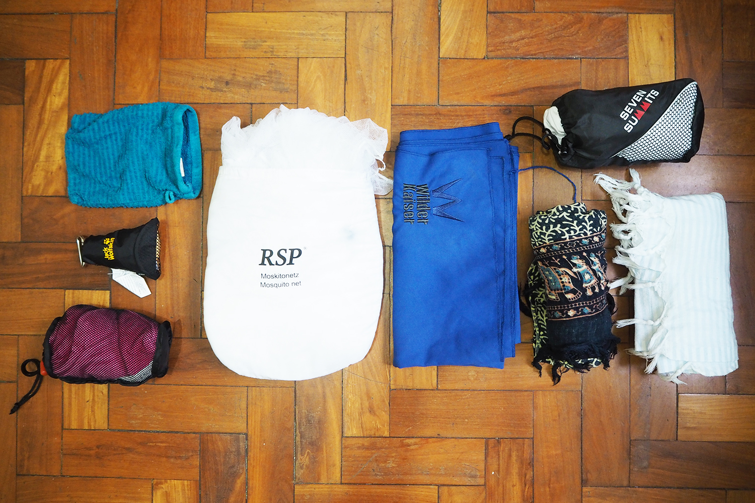 Und dann gibt’s da noch die klassischen Travelessentials, die natürlich nicht nur auf Reisen, sondern auch bei längeren Aufenthalten super praktisch sind, weil sie extrem platzsparend sind. Da wäre zum Beispiel das Travelhandtuch, dass man echt klein zusammen rollen kann. Dieses habe ich gleich einmal in klein von Jack Wolfskin und einmal in groß (ähnliches hier). Dann habe ich mir auch noch meinen Hüttenschlafsack auf Baumwolle von Seven Sumits (ähnlicher hier) mitgenommen. Nicht nur in den österreichischen Alpen ist dieser von Vorteil sondern auch auf Reisen, wenn man zum Beispiel in Hostels schläft, wo man die Betten nicht ganz so hygienisch findet. Ich verwende den Schlafsach mittlerweile eigentlich als Decke, weil ich mich nicht darum bemüht habe mir eine richtige hier zu kaufen. Natürlich musste auch mein Reisepolster mit, den man ganz praktisch zu einem kleinen Päckchen zusammen knüddeln kann und dann einfach aufbläst. Den verwende ich vor Allem auf Langstreckenflüge und natürlich hier in Brasilien, wenn ich mal länger (7 Stunden) im Bus sitzen muss. Ebenfalls habe ich mir zwei Badehandtücher eingepackt, die nehmen ja schließlich nicht viel Platz weg. Eines hätte wohl auch gereicht. Bzw. habe ich mir das eine sogar bei meiner letzten Brasilienreise hier gekauft, also man würde auf jeden Fall auch ein gleichwertiges hier vor Ort finden. Einen Waschlappen habe ich mir auch eingepackt, den hab ich dann immer, wenn ich herum reise in meiner Toilettetasche, falls ich mal schnell etwas zum Abtrocknen… Tja, und auch nicht so unwichtig ist ein Moskitonetz (ähnliches hier). Gerade in Brasilien sollte man sich wegen diversen Krankheiten (Denque, Zika, Schweinegrippe, Malaria, …) ja so gut wie möglich vor Moskitos schützen, , deshalb hab ich das Moskitonetz eigentlich immer dabei. Im Normalfall haben gute Hotels oder Hostels immer selbst schon welche montiert, aber das kommt leider auch nicht immer vor und dann kann ich einfach das Netz selbst montieren. Ich habe hier Gott sei Dank das Glück, dass ich im 6. Stock wohne und so weit rauf schaffen es dann die Moskitos nicht, deshalb brauch ich das Netz zuhause schon mal nicht.