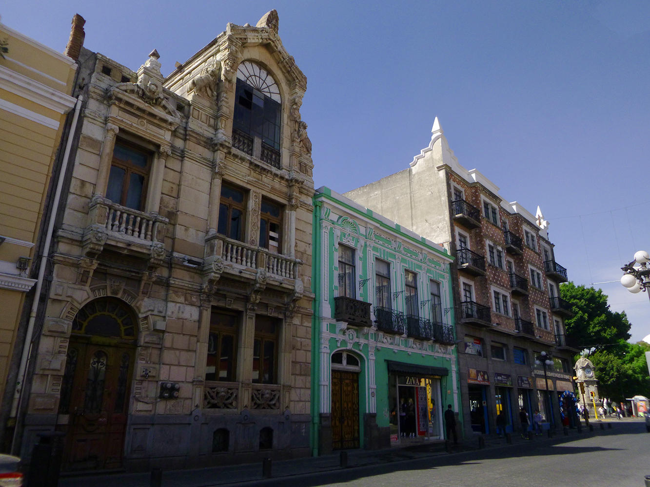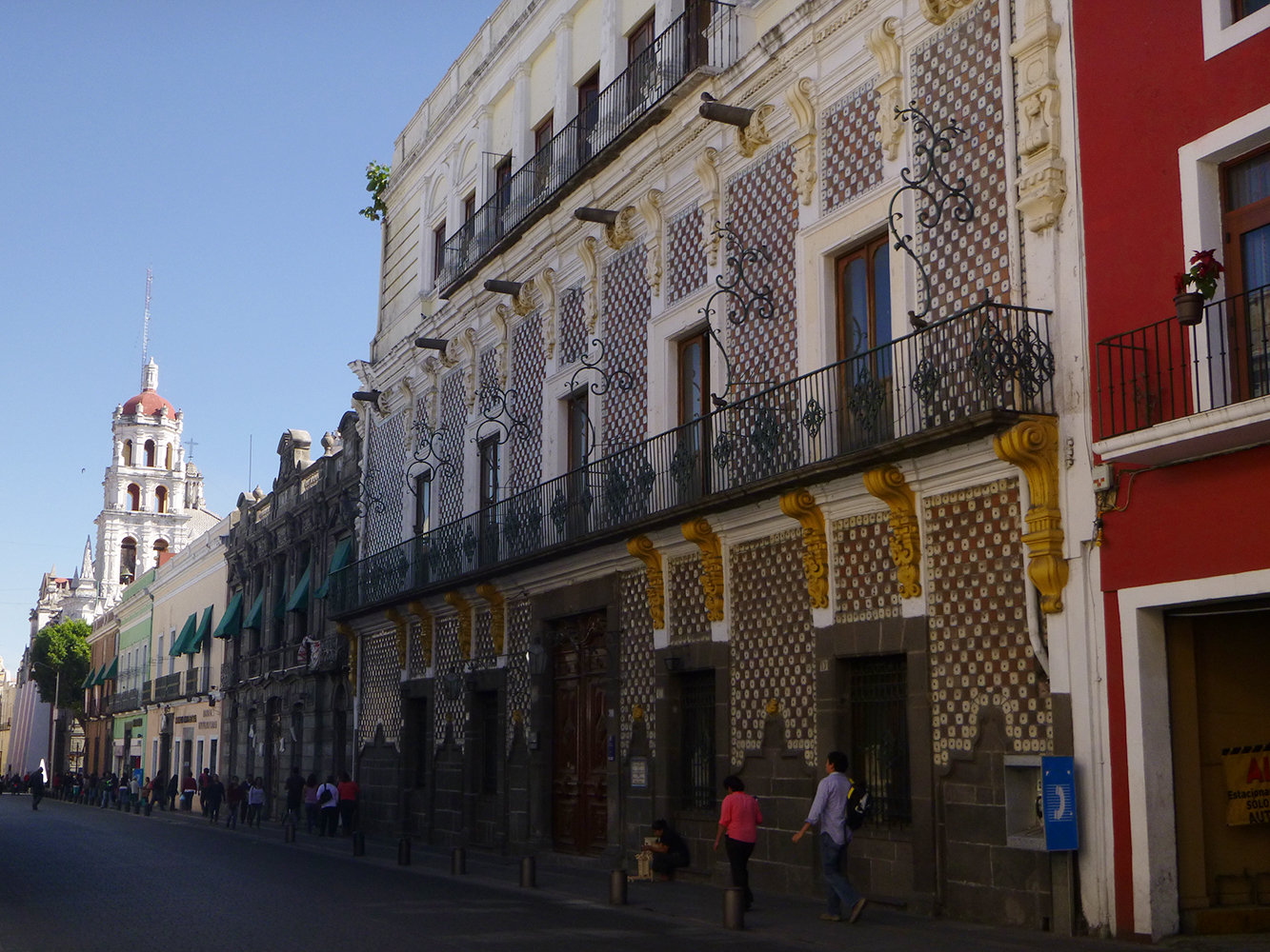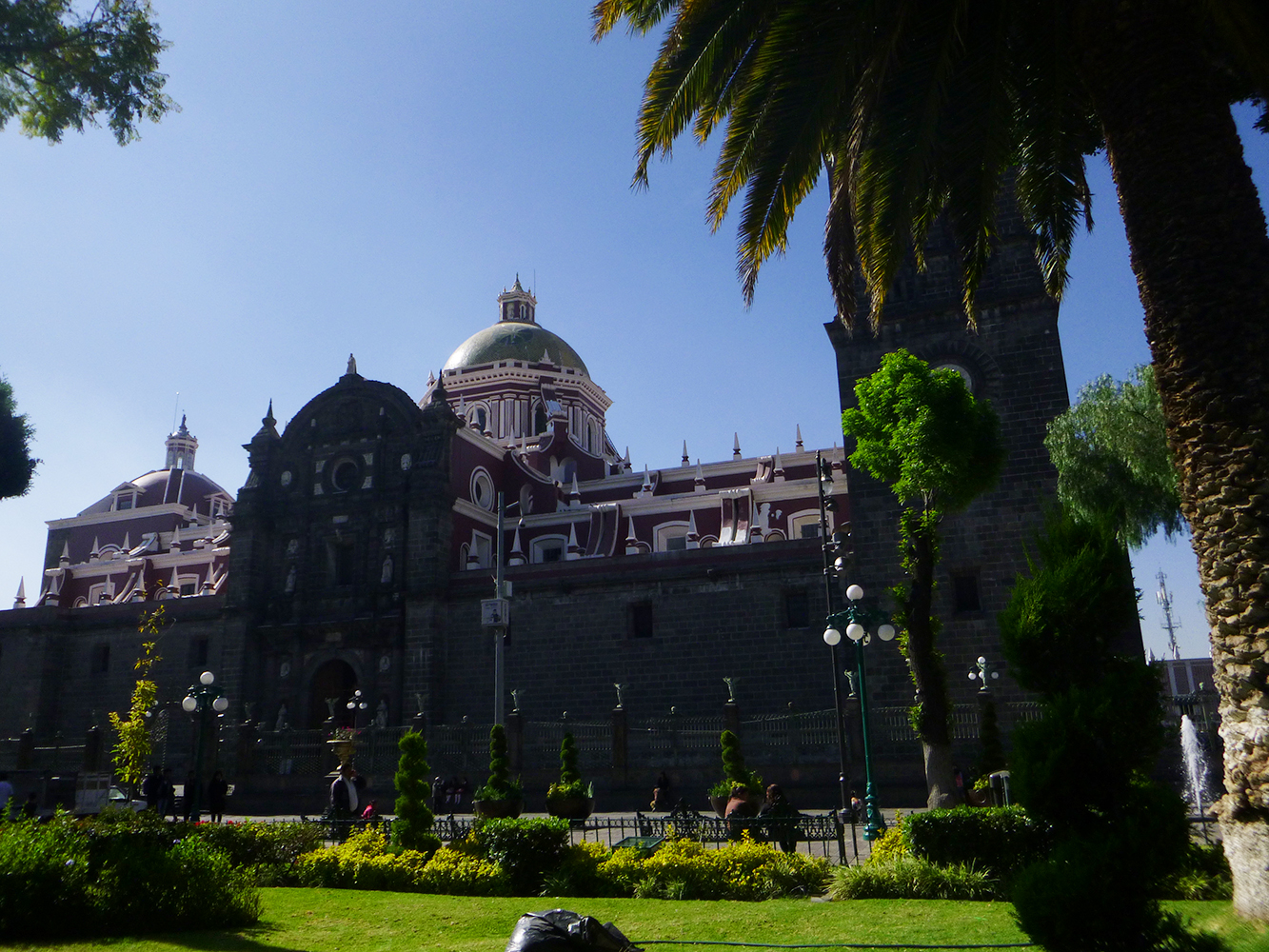 Mit dem Bus ist man innerhalb von vier Stunden in Puebla, wir sind deshalb Nachmittags in Mexico City in den Bus eingestiegen und kamen am frühen Abend dort an. Die Busfahrt ist der Wahnsinn, während mein Freund neben mir genüsslichen ein Nickerchen gemacht hat, habe ich die Unendlichkeit der Favelas von Mexico City verfolgt und schließlich ist vor mir der Popocatépetl, Nordamerikas zweithöchster Vulkan, aufgetaucht. Ein eindrucksvoller Moment. Vom Busbahnhof nahmen wir ein Taxi das uns bis vors Hostel brachte. Tatsächlich ist der Bahnhof ganz schön weit vom Ortskern entfernt und eine Taxifahrt lohnt sich. In Puebla selbst braucht man allerdings keine öffentlichen Verkehrsmittel, alles ist gemütlich zu Fuß erreichbar.