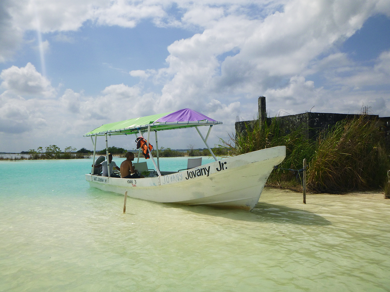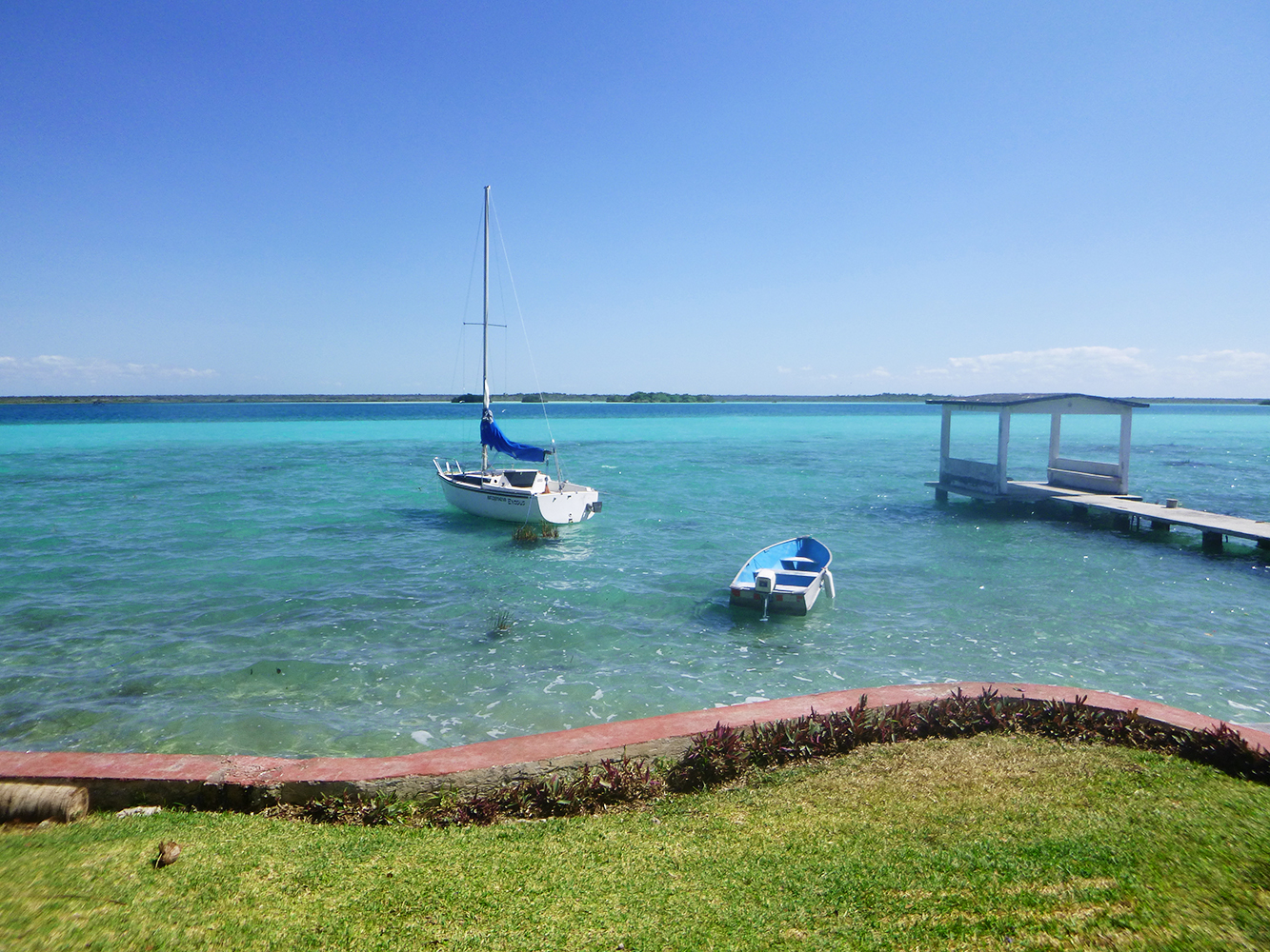 Zu tun ist in Bacalar nicht viel. Da wir aber extrem angeschlagen waren von unserer Lebensmittelvergiftung, waren wir ganz glücklich damit. Das tollste dort ist einfach dieser unglaubliche See. Mit 42 km Länge, ist er einer der größten in Mittelamerika. Entstanden ist er durch die sieben Cenoten, die für eine ständige Wasserzirkulation verantwortlich sind. Auf Grund dessen gibt es auch die verschiedensten Tiefenunterschiede und damit auch die schönsten blau Variationen. Um sich den besten Überblick zu verschaffen, sollte man unbedingt an einer Bootstour mitmachen! Je mehr Leute, desto billiger wird es.Bacalar ist der perfekte Ort, um dem ganzen restlichen Trubel aus Yukatan zu entfliehen und mal etwas Ruhe zu bekommen. Gerade nach etlichen Sightseeingtagen und Krankheit kam der Ort für uns wie gerufen. Einfach mal Urlaub machen war das Motto…