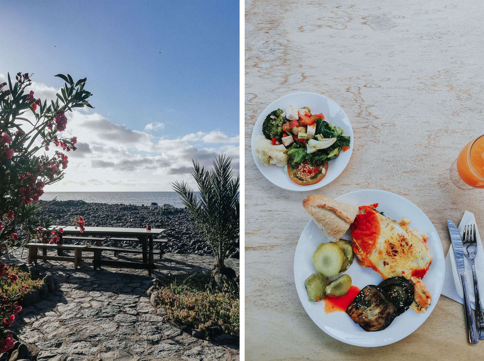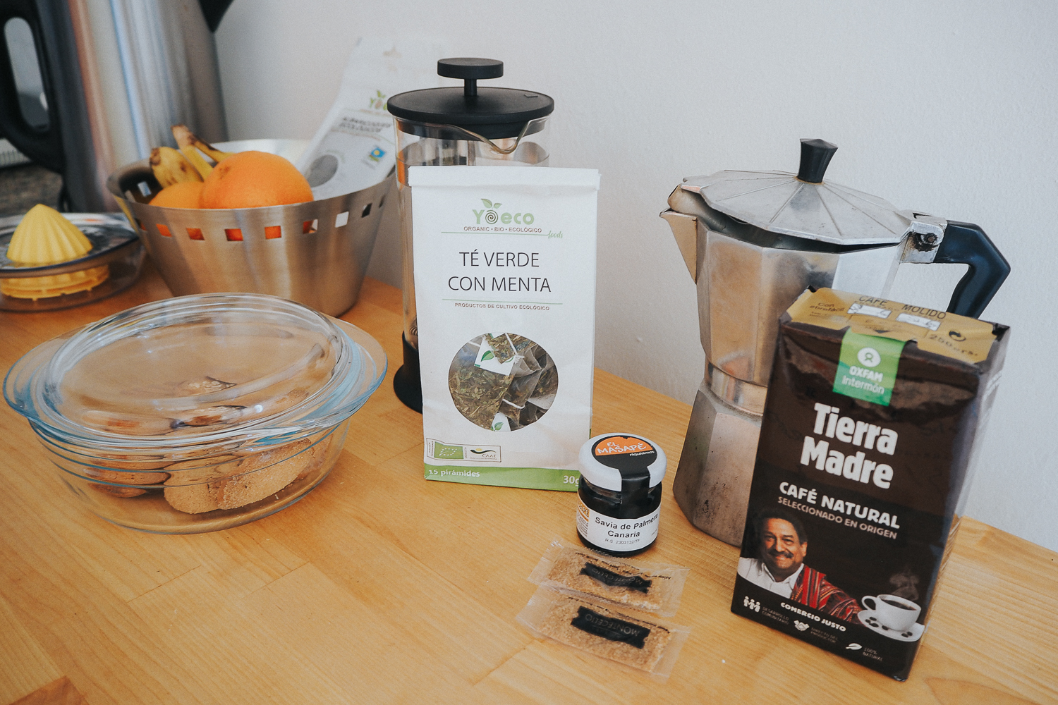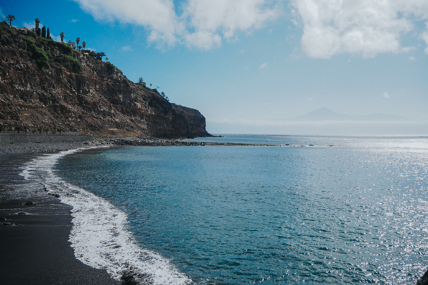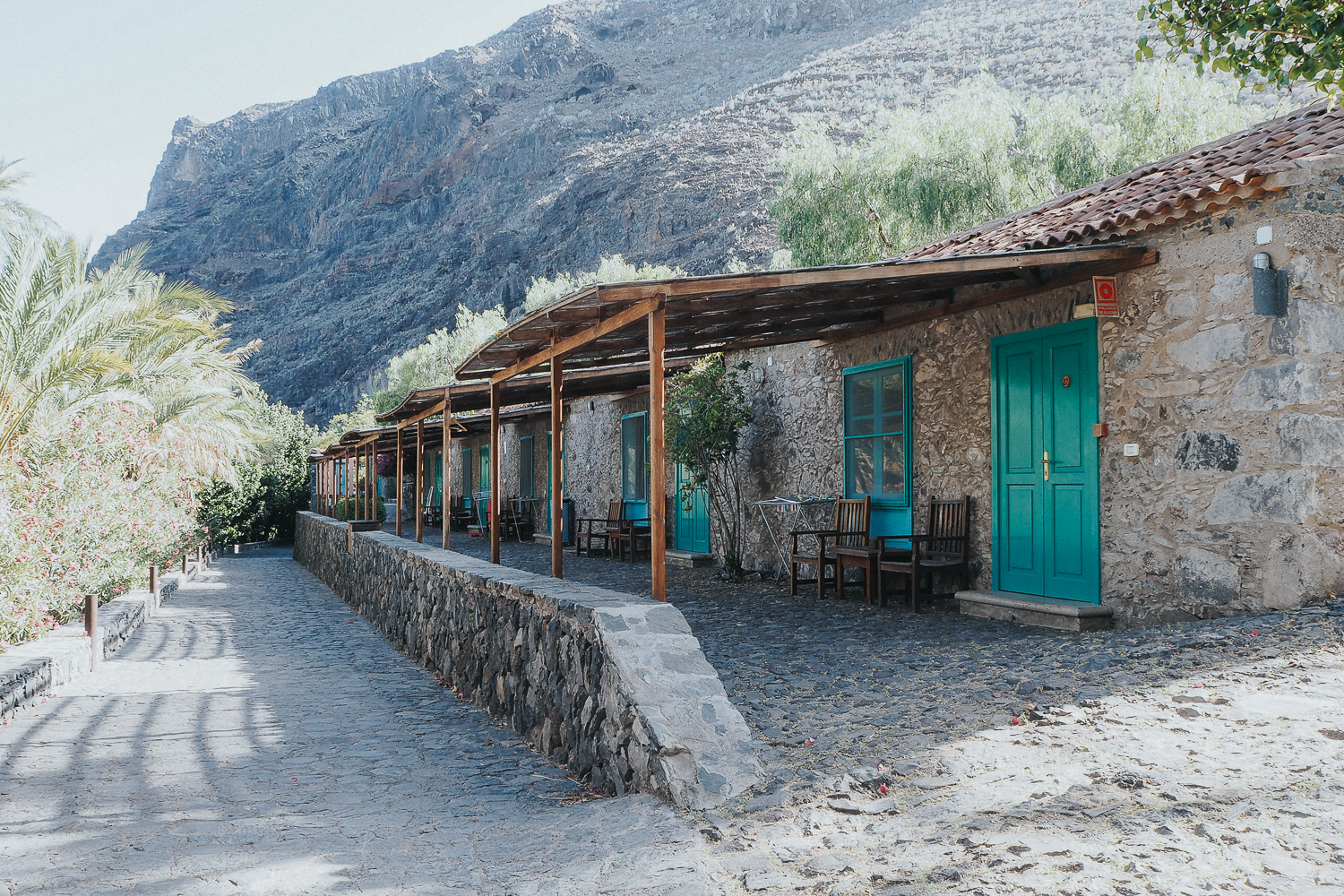 In Valle Gran Rey hieß es Unterkunft zu wechseln. Der wohl touristische Ort auf La Gomera beherbergt gerade einmal 4 000 Menschen. Viele der Apartments wurden für Touristen umgebaut, große Hotels sucht man hier dennoch vergeblich. Keine zwei Minuten vom Strand entfernt, mit herrlicher Sicht aufs Meer, aber mitten drin im Geschehen, war meine Unterkunft, die Pénsion Candeleria. Die Apartments werden als Familienbetrieb schon seit mehreren Jahrzehnten als Ferienunterkunft vermietet und seither ist viel passiert. Carol und ihre Familie haben sehr viel Liebe in die einzelnen Zimmer gesteckt und vor allem das Thema Nachhaltigkeit wird hier großgeschrieben. Eine kleine Auswahl an regionalen Köstlichkeiten befinden sich in der Küche, ein Mehrwegflasche soll Gäste animieren das Leitungswasser zu trinken. Für bessere Wasserqualität gibt es auch einen Wasserfilter im Apartment und im Badezimmer trifft man auf ein Naturkosmetik Duschgel und eine Bambuszahnbürste. Ich habe mich gleich pudelwohl in der Unterkunft gefühlt.