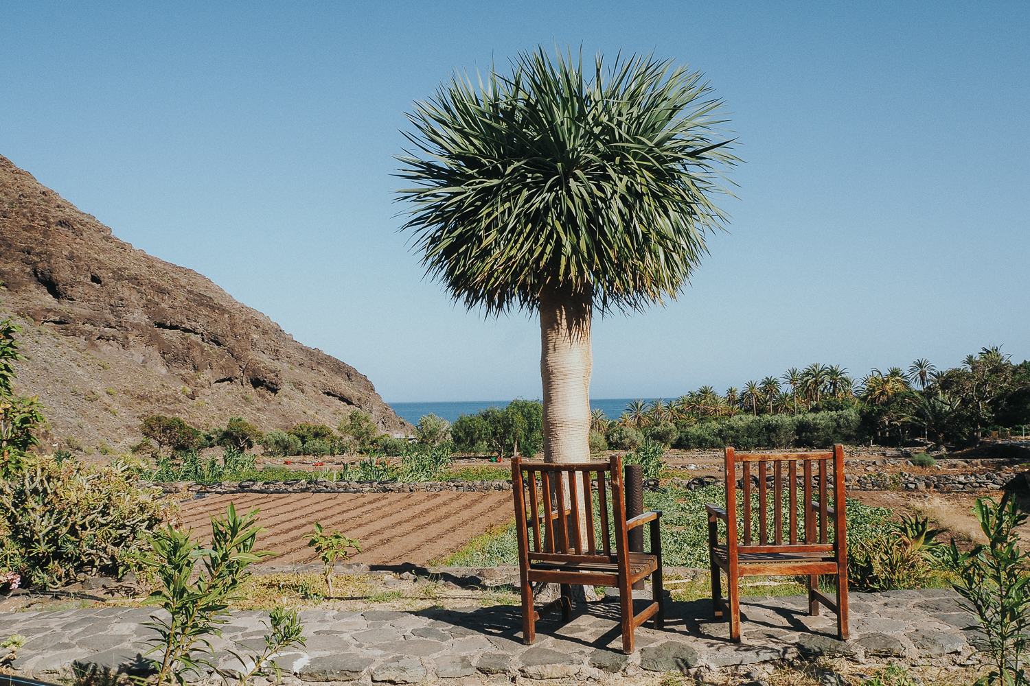 In Hermigua, einem kleinen Dörfchen mitten in den Bergen befindet sich Los Telares ein vielseitiges Projekt zum Verweilen und Staunen. Dies beinhaltet zum Einen einige Apartments mit imposanter Aussicht, in denen auch ein paar meiner Blogger Kolleginnen schlafen durften und recht begeistert waren. Zum Anderen kann man bei Los Telares, oder besser gesagt, im ethnografischen Park von La Gomera, vieles Interessantes über die Landwirtschaft auf La Gomera erfahren, welche die Insel noch bis vor 30 Jahren geprägt hat. Neben altem und skurrilem Werkzeug findet man hier auch eine alte Gofio Mühle und kann im Garten viele verschiedene Pflanzen kennen lernen und wiederentdecken, die seit Jahrhunderten auf der Insel angebaut werden. Die Terrasse im vorderen Bereich lädt außerdem ein, einen frisch gepressten Saft oder einen lokalen Wein zu verkosten und was Pikantes oder Süßes zu schlemmen ,während man die herrliche Aussicht auf Pedro und Pedra, die beiden Felsformationen die über Los Telares ragen, genießt.