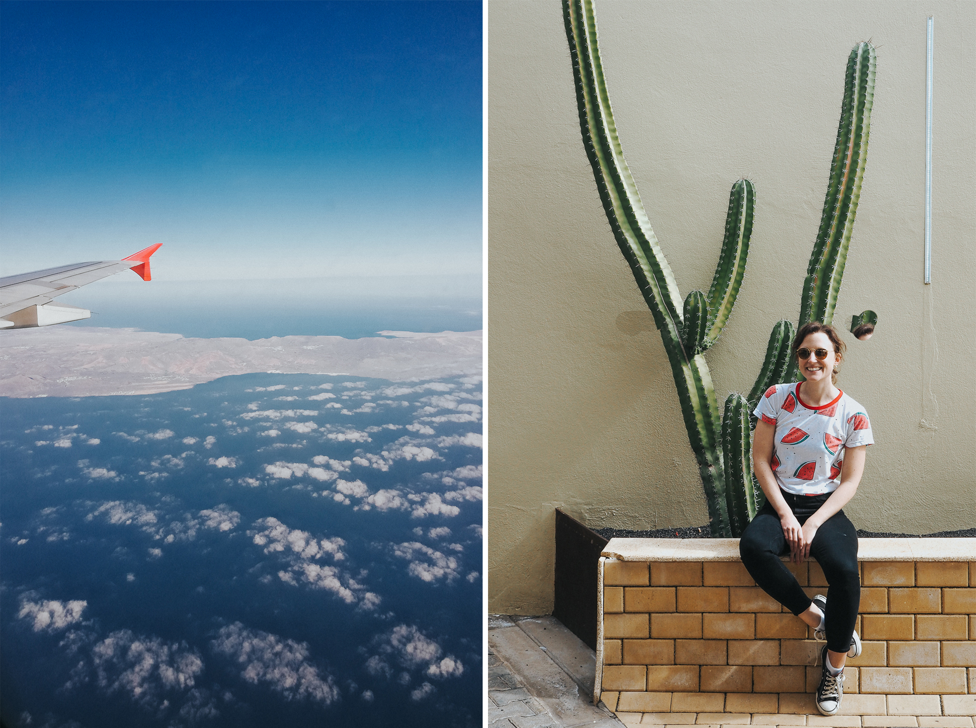 Unseren Flug hatten wir mit Laudamotion gebucht. Wir flogen von Wien nach Lanzarote, buchten unseren Rückflug allerdings von Fuerteventura, da wir noch eine weitere Insel der Kanaren kennen lernen wollten. Insgesamt zahlten wir knappe 120€ pro Person, also ein echtes Schnäppchen. Nochmal würde ich mit Laudamotion allerdings nicht fliegen. Für einen fünf Stunden Flug gab es weder inkludierte Getränke, noch irgendeine Mahlzeit und auf der Speisearte gab es außer Soletti nichts Veganes. Außerdem hatte unser Rückflug fast drei Stunden Verspätung. Neben all dem, bin ich mittlerweile sowieso der Meinung Billigairlines nicht mehr unterstützen zu können. Dann das nächste Mal lieber ein bisschen mehr Geld ausgeben, damit billiges Fliegen nicht mehr zur Norm gehört – Ist immerhin ähnlich zu Fast Fashion.
