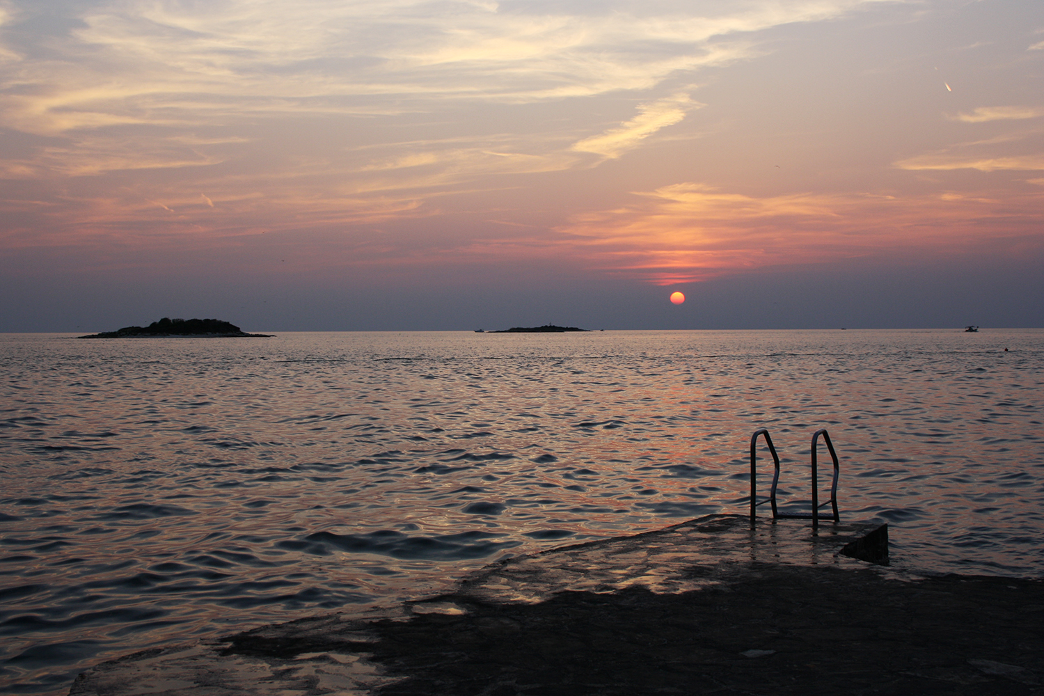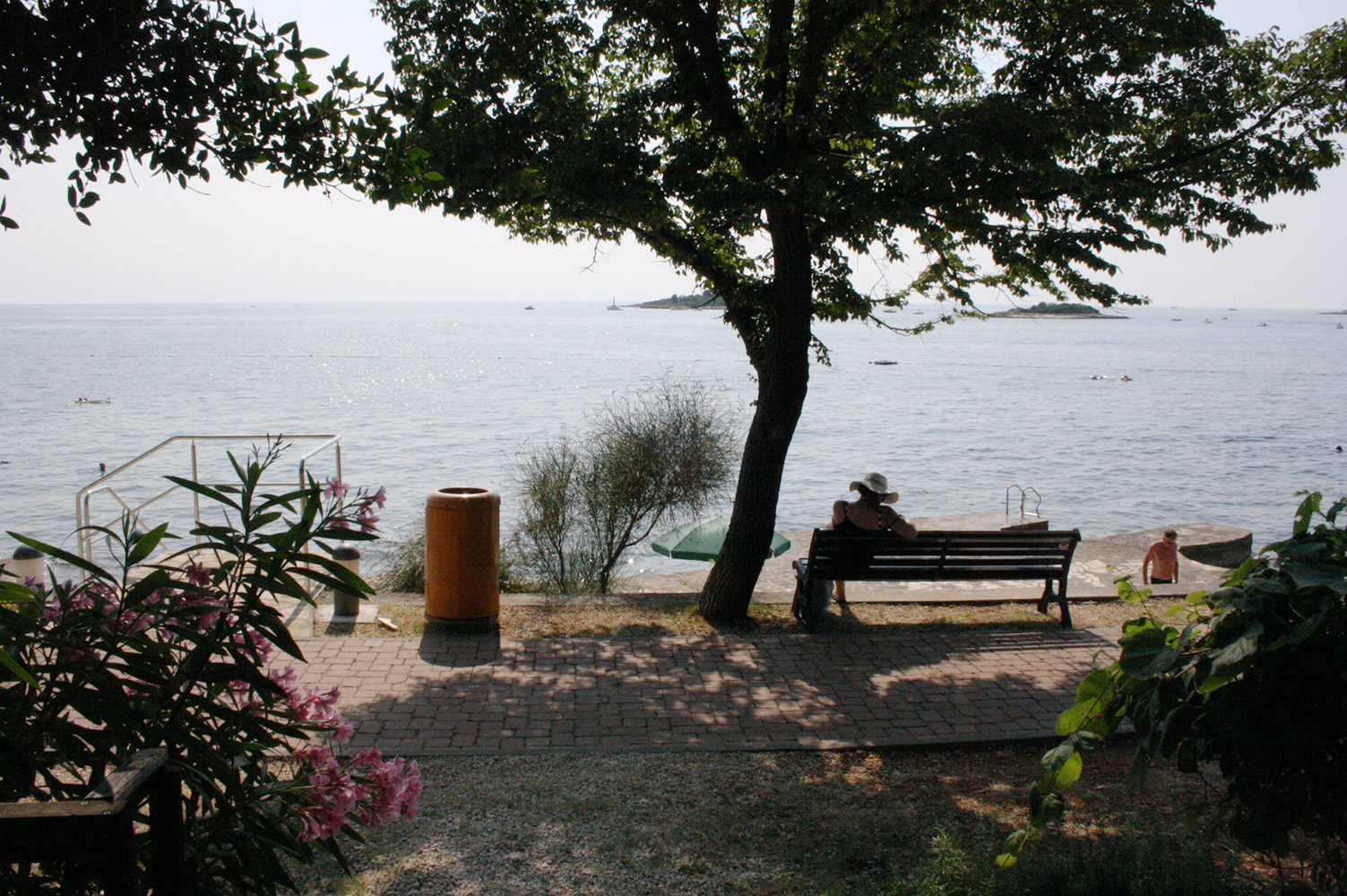 Schon das zweite Jahr fahre ich mit meinem Freund auf den Campingplatz Zelena Laguna zwischen Poreč und Vrsar. Die Eltern meines Freundes haben dort einen Dauerstellplatz für ihren Wohnwagen und zwar in erster Reihe, dirkt am Meer. Der Campingplatz ist an und für sich einer der Sorte, die ich normalerweise meiden würde. Er gehört zu einem riesigen Hotelkomplex, mit Restaurants, Club, Tennisplatz, Bars und Appartments. Man braucht diese Anlage nie zu verlassen, es gibt einfach alles vor Ort. Der Campingplatz alleine ist schon riesig und überseht mit deutschen, österreichischen und niederländischen Touristen. Hauptsächlich Familien. Mir wäre das zu viel des Guten und ich wäre nach einer Nacht im Zelt wahrscheinlich wieder abgereist.