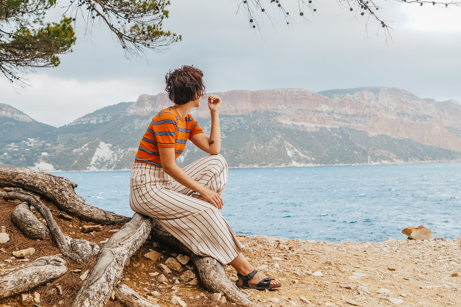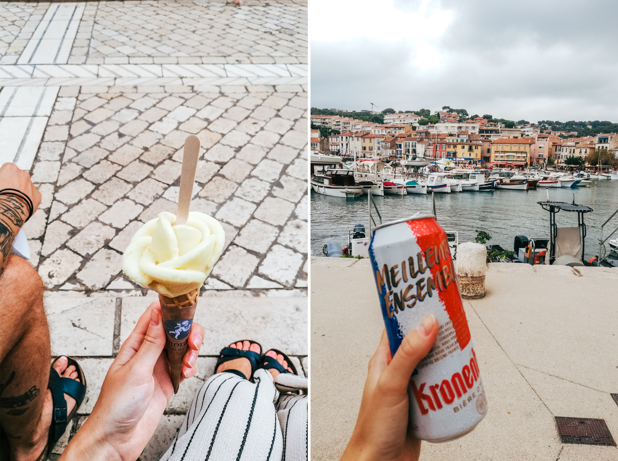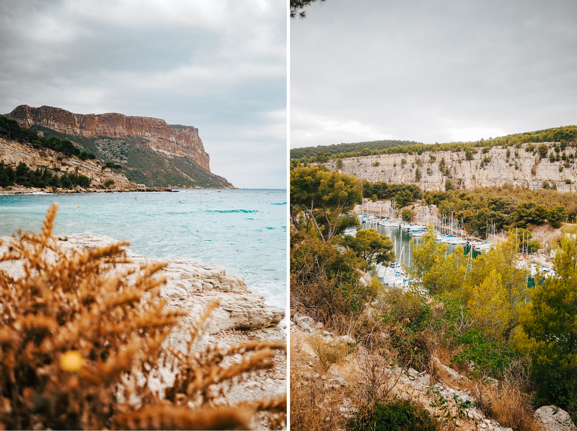 Das Örtchen an sich ist aber einfach bezaubernd, wir sind stundenlang durch die Gassen flaniert, haben Fotos gemacht, Postkarten gekauft und Eis gegessen. Für den Strand war es leider etwas zu stürmisch und der Wellengang zu wild. Da es trotzdem angenehm warm war, trauten sich dennoch einige Menschen ins Wasser. Wir ließen davon aber ab und spazierten stattdessen zu den Calanques, welche steilwendige Küstenabschnitte sind. Unser Spaziergang war nicht sonderlich gut geplant, daher haben wir es nur bis zur Calenque de Port-Miou geschafft, wo Segelboote geparkt waren. Der Fjord ist natürlich dennoch unfassbar beeindruckend. Am Rückweg kamen wir noch bei einem felsigen Küstenvorsprung vorbei, wo wir eine unglaublich tolle Aussicht auf das Cap Canaille, die höchste Klippe des Landes, hatten. Alleine dafür war der Ausflug schon Gold wert.