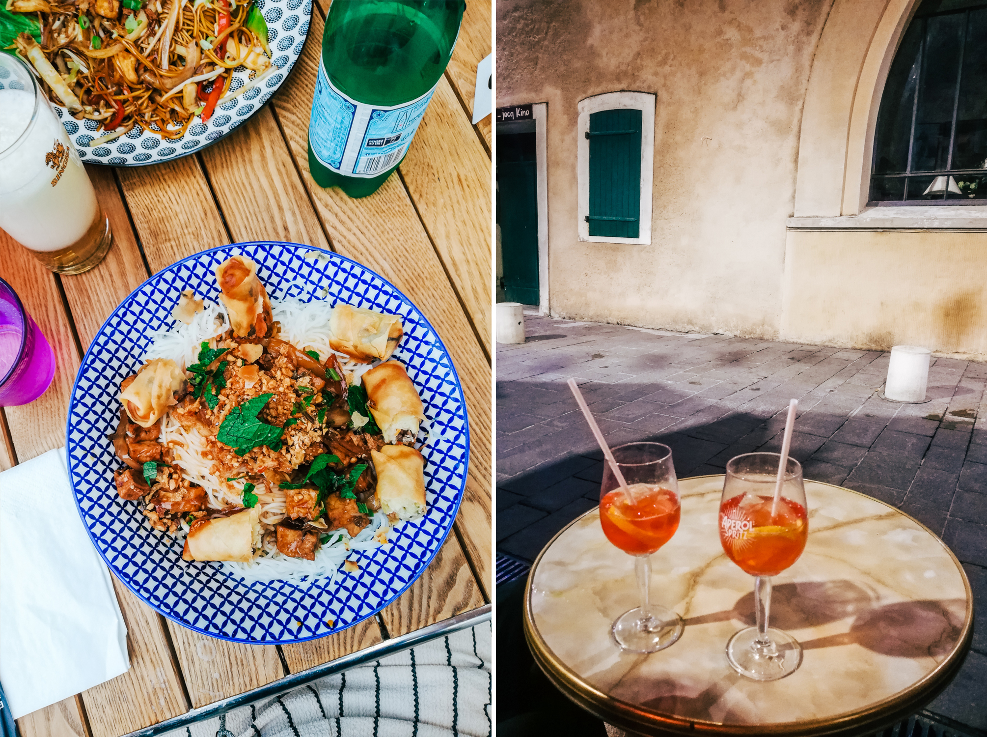 Um 19 Uhr waren wir schließlich in dem thailändischen Restaurant Bangkok Café gelandet, wo es tatsächlich veganes Essen gibt. Auf Happy Cow konnten wir auch noch ein paar andere Restaurants ausfindig machen, wo es vegane Speisen gab, aber an dem Tag hatten wir einfach Lust auf Thai Food. Den Abend ließen wir dann noch mit überteuerten Campari Sodas ausklingen und schließlich ging es am nächsten Tag weiter nach Cassis.