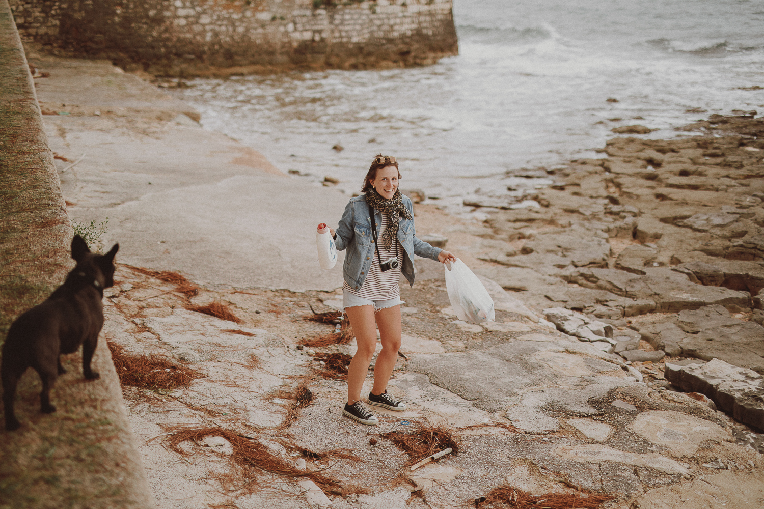 Neben dem Verzicht auf Plastikverpackungen, kann man im Urlaub auch selbst anpacken und am Strand ein bisschen aufräumen. Den Strandspaziergang mit einem Beach-Clean-Up zu verbinden kann außerdem eine amüsierende Beschäftigung sein, bei denen man immer wieder sehr seltsame Produkte findet, die manchmal vielleicht sogar schon einige Jahrzehnte alt sind. Vielleicht kann man dabei sogar ein paar andere Touristen anstecken oder auch Freunde und Familie. Ich war super glücklich, als ich gemerkt habe, dass meine Mama und meine Freundin gleich mit angepackt haben und meine Schwester das sogar ohne Aufforderung mit der Kamera dokumentiert hat. Am Ende hatten wir sogar ein nettes Gespräch mit einem tschechischen Pärchen, die sich bei uns bedankt haben, dass wir den Strand sauber machen. Auch sie kannten das Problem und zeigten uns Fotos von einer kroatischen Insel, an dessen Strand Kühlschränke entsorgt wurden und sie versuchten mit der lokalen Behörden den Sperrmüll dort zu entfernen – ohne Erfolg.