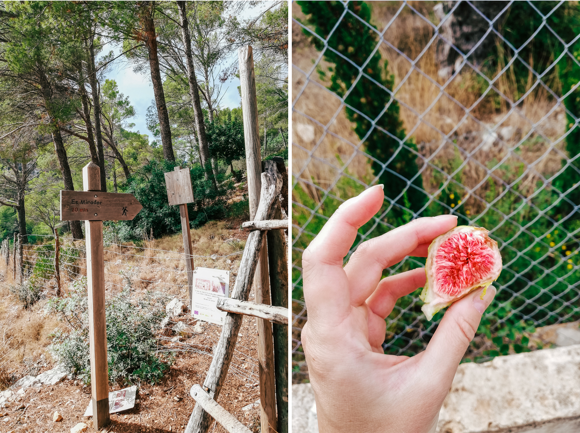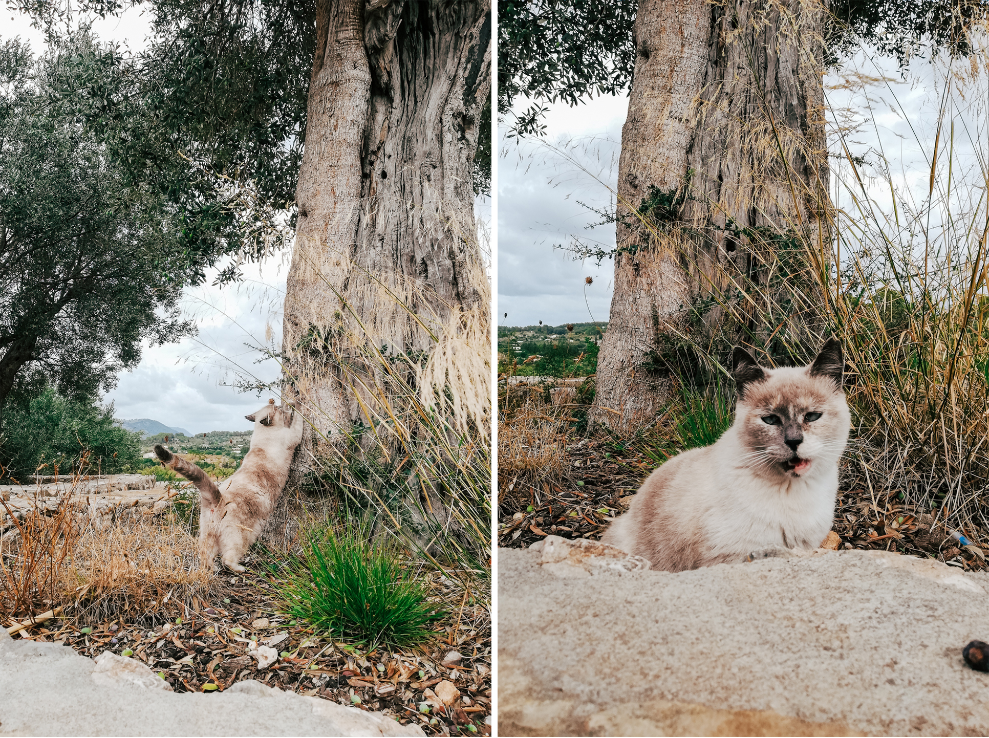 Am Weg nach Caimari haben wir uns gleich mal verlaufen und haben uns auf der Schnellstraße wieder gefunden. Wir haben lang herum überlegt, bis wir realisierten, dass wir einfach komplett falsch gestartet sind. Also noch mal zum richtigen Ausgangspunkt zurück und schließlich machte der Weg auch Sinn. Der halbstündige Weg ins Nachbardorf führt vorbei an vielen Schafweiden, auch Kätzchen haben wir immer wieder getroffen und gestaunt haben wir über die vielen Mandelbäume. Hier und da wurde auch eine Feige vom Baum genascht. In Caimari wäre dann der Weg noch 20 Minuten weiter zu einer Aussichtsplattform gegangen. Wir mussten aber da schon wieder umkehren. Am Weg fanden wir dann das kleine Fahrrad-Café Sa Ruta Verda mit einer veganen Speisekarte. Leider zu spät, denn Nachmittags haben die meisten Läden hier zu.