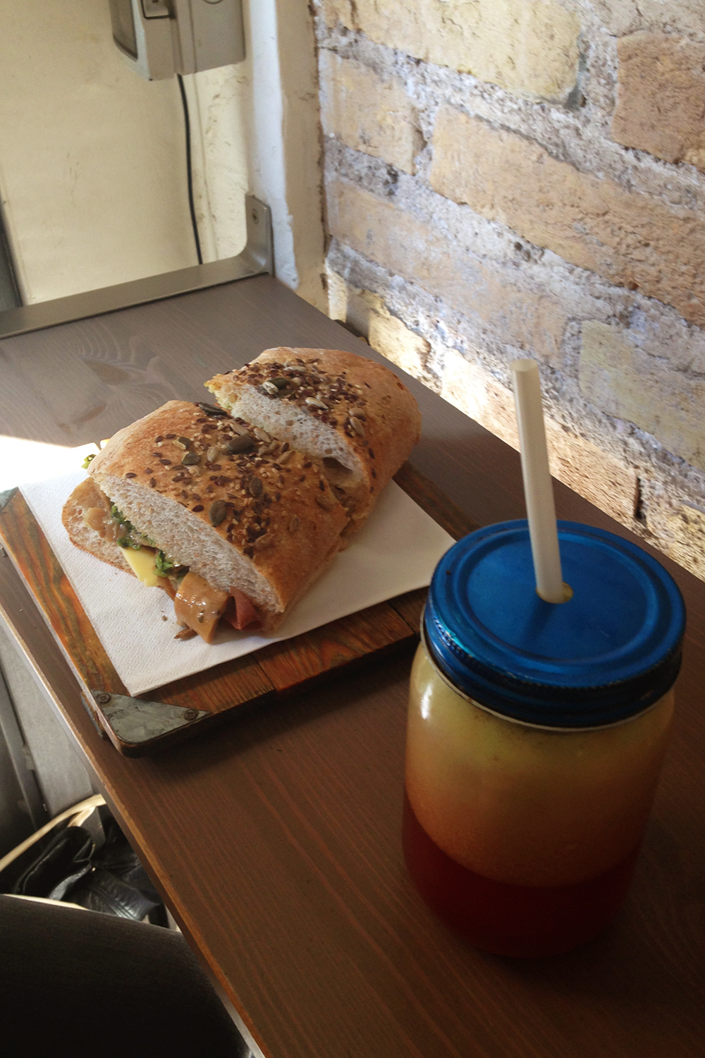 iPhameDas iPhame steuerten wir gleich nach unserer Ankunft mit dem Zug an. Nach dem wir um 11 Uhr noch immer kein Frühstück hatten standen wir mit knurrenden Mägen in dem kleinen Laden, nicht weit vom Bahnhof entfernt. Wir wurden gleich super herzlich von den beiden Männern hinter der Theke begrüßt und sie erklärten uns alle Sandwich Zutaten und überredeten uns zu einem köstlichen Smoothie. Wir aßen beide ein Sandwich mit veganem Prosciutto, veganem Käse auf Kokosölbasis, Pilzen, Brokkoli und Tomaten. So gute Sandwiches hatten wir selten gegessen. Der Laden ist auf jeden Fall einen Besuch wert. Wir waren hin und weg; vom Service und natürlich auch von den köstliches Sandwiches.
