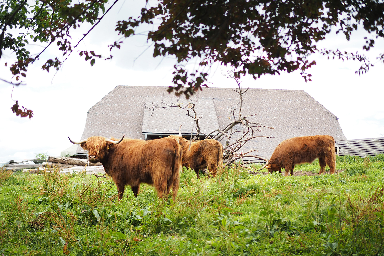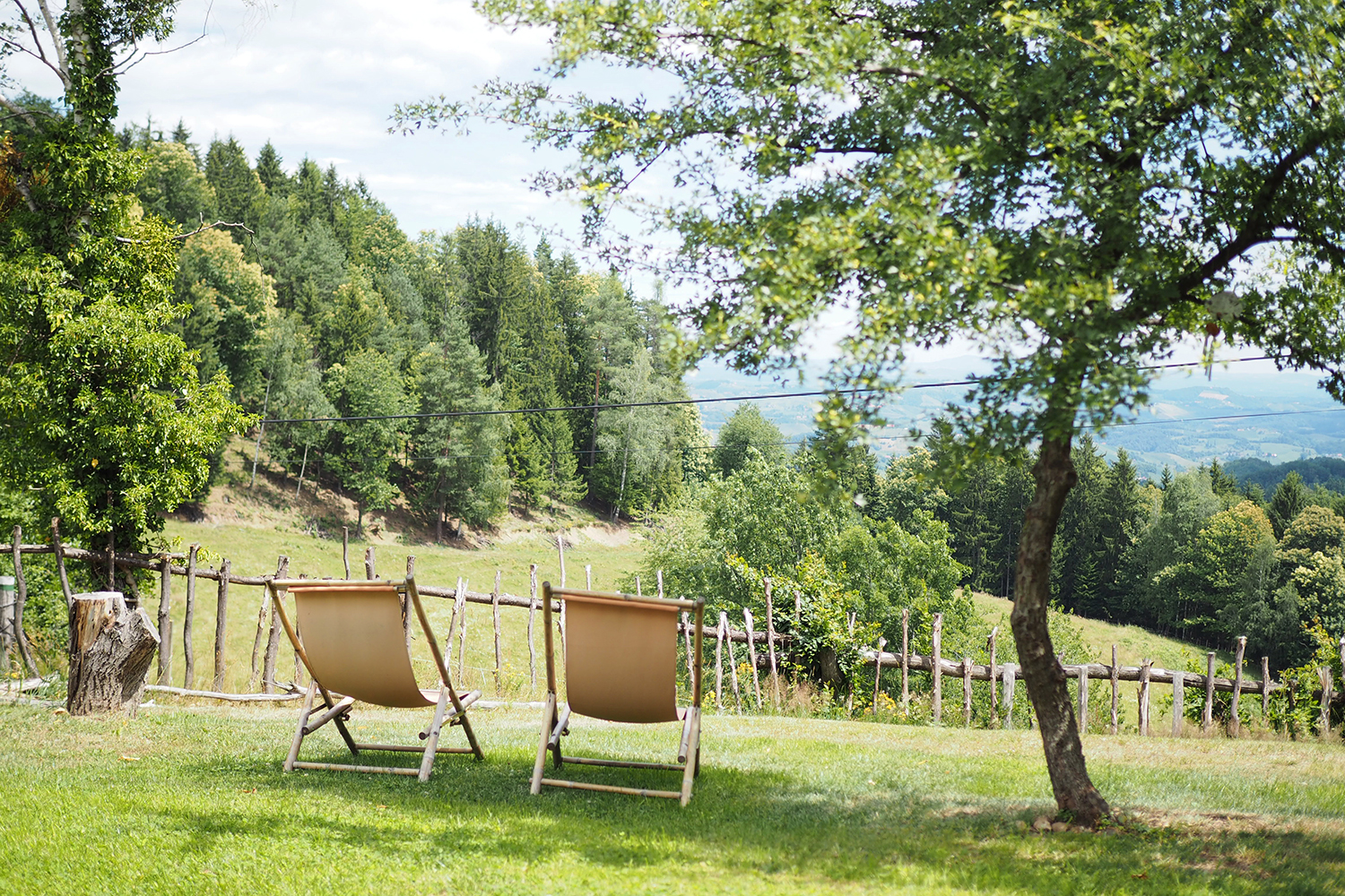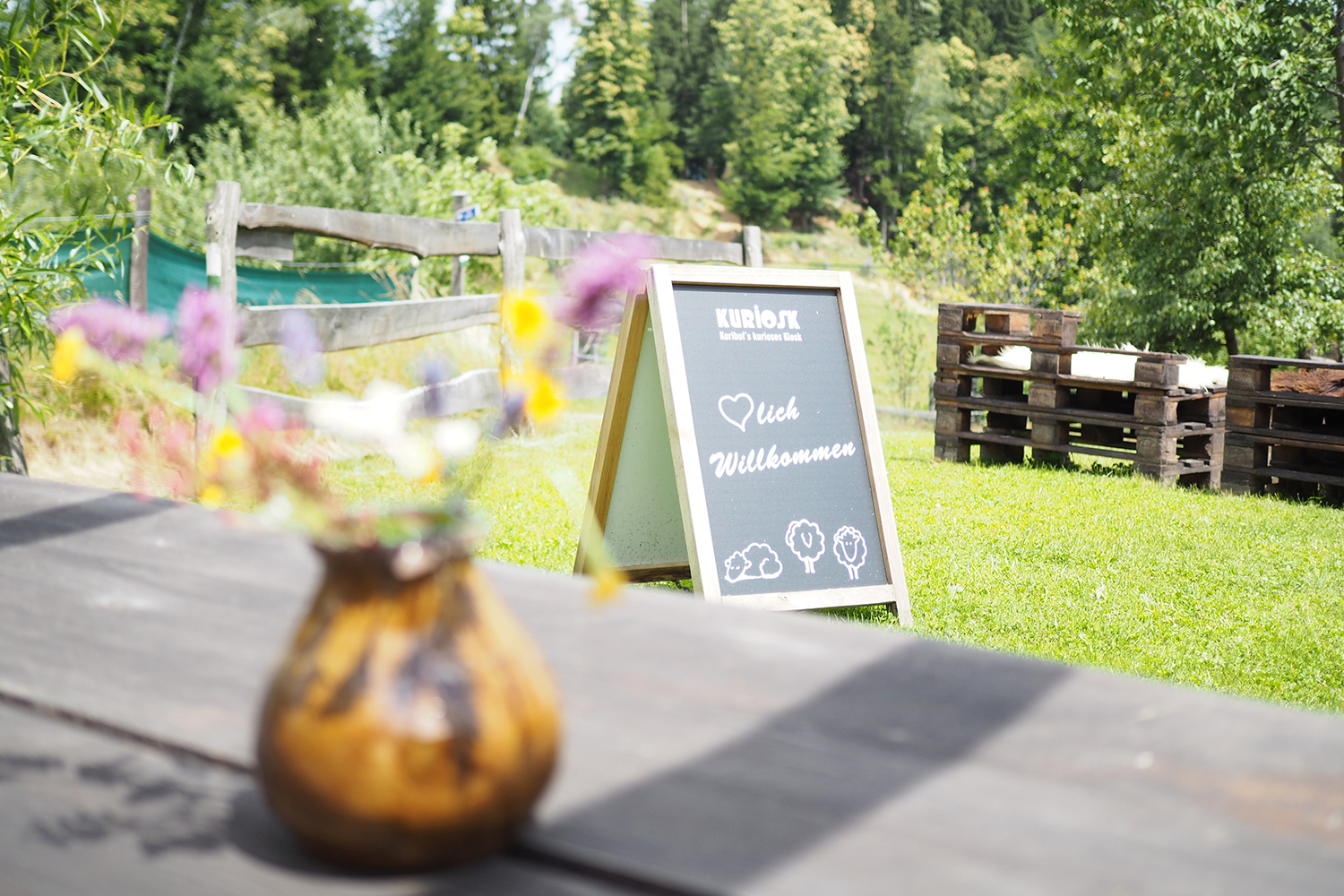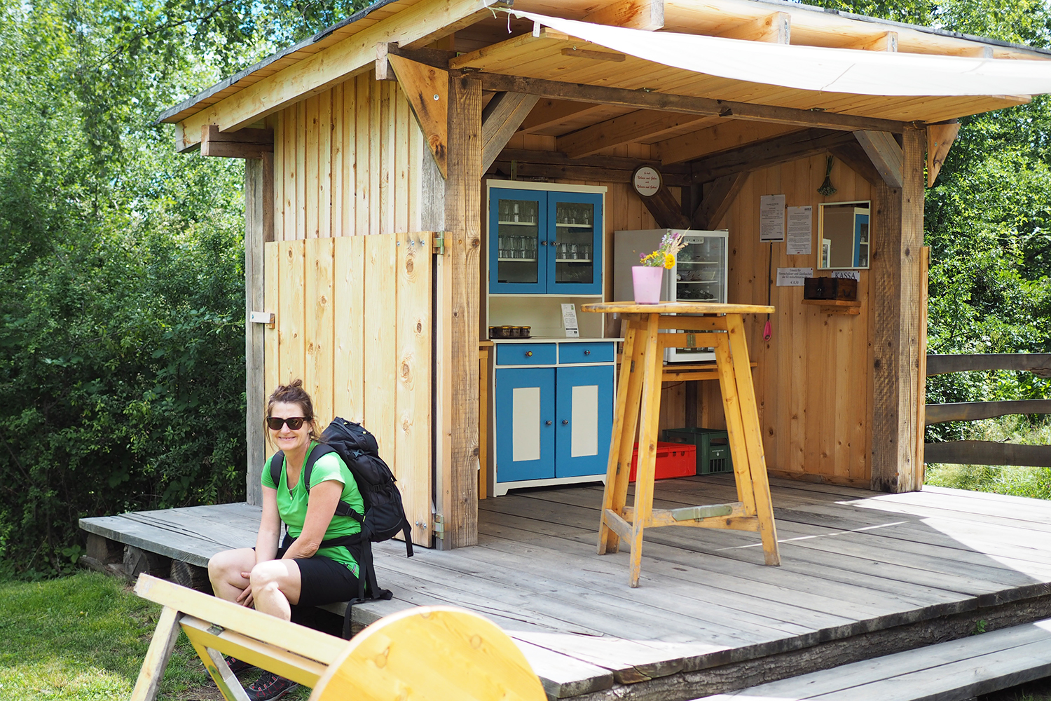 Der Grenzpanoramaweg führt an der gesamten Steirisch-Slowenischen Grenze entlang und ist hier in dem Abschnitt mit der Heiligengeistklamm eine perfekte Ergänzung. Wir folgen dem Weg Richtung Osten und kommen bei dem Kuriosk vorbei, einem Kiosk mit Selbstbedienung und entzückendem Garten. Hier kann man Säfte und regionale Schmankerln kaufen. Sogar frische Muffins standen im Kühlschrank zur Verfügung. Schließlich passiert man eine große Hochlandrinder Weide und kommt bei einigen Bauernhöfen und Weingärten vorbei. Nebenbei hat man auch noch eine herrliche Aussicht auf die umliegenden Berge und Täler. Beim Rückweg ersparen wir uns die Hauptstraße, die wir zu Beginn bewandert sind und kommen direkt durch einen Wiesen-Weg zu unserem geparkten Auto zurück.