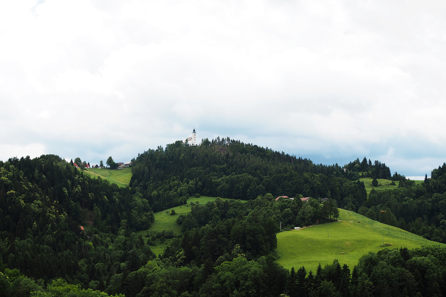 Oben angekommen spaziert man noch über herrliche grüne Wiesen, bis man dann den Grenzübergang nach Slowenien passieren kann. Das kleine Örtchen Sv. Duh ist bekannt für seine Kirche auf 903 Höhenmeter. Vor allem zu Pfingsten ist es ein beliebter Ort für viele Pilger. Von oben hat man auch eine großartige Aussicht auf die österreichische Seite und man kann in einem der Restaurants einkehren und slowenische Spezialitäten schlemmen.