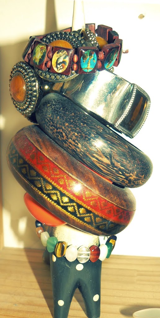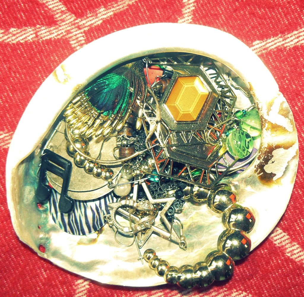Ein kleiner Eintrag zu meinem Schmuck den ich besitze, kann nicht schaden, habe ich mir gedacht. Und eventuell folgen dann auch noch Einträge zu Taschen, Gürtel und Co. in den nächsten Wochen. Zu meiner Aufbewarung gibts nicht viel zu sagen. Auf engem Raum liegt alles beisammen. Ohringe werden durch eine Schallplatte, Ketten und Ringe durch eine Keramikhand, Armreifen durch eine Holzkatze und Ohrstecker durch eine Muschel aufbewart. Die Sonnenbrillen liegen einfach nur so rum.
