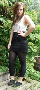 Meinen High Waist Rock von H&M hatte ich jetzt shon länger nicht mehr an und genau deshalb hat er mich heute Früh zu einer neuen Kombination gebracht. Denn in den meisten Fällen sieht der Rock einfach nur langweilig oder spießig aus. Mich haben auch schon viele darauf angesprochen, dass ich wie eine klassische Sektretärin aussehe. Solche Komplimente mag wohl niemand. Und wahrscheinlich lag er ganau deshalb so lange im Kasten rum. Aber Nieten schaffen es immer etwas langweiliges ein wenig Rock’n’Roll einzuhauchen!