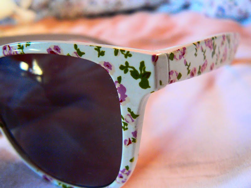 Da ich momentan etwas knapp bei Kasse bin, nahm ich mir bei meinem letzten Shoppingausflug vor, in keine großen Modehäuser sondern wenn dann nur in die Accessoir Abteilung zu schauen. So kam eine schicke Sonnenbrille im Wayfarer Styl und eine überdymensionale Samtmasche in meine Einkaufstasche. Ob ich die Samtmasche tatsächlich einmal tragen werde ist zwar fragwürdig, aber bei 4€ in der H&M Kinderabteilung konnte ich keinen vernünftigen Grund finden, sie nicht zu kaufen. Auch bei der Wayfarer bin ich unentschlossen, denn ich steh zwar auf alles das mit Blümchen zu tun hat, aber Muster und Muster verträgt sich bekanntlich nicht… Wir werden sehen.