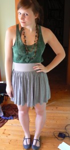 batik Shirt: selbstgemacht Glasperlenkette: Springfield grauer Rock: H&M T-Ballerinas: Topshop
