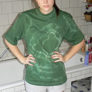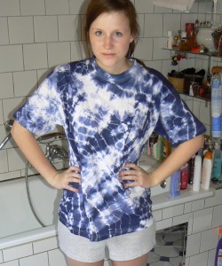 Gestern habe ich mit meinem Vater gebatikt! Der kennt sich nämlich damit richtig gut aus, weil er selbst früher in den 70ern ein kleiner Hippie war, der sich all sein Gewant gefärbt hat. Hatte sogar noch die Farben von vor 30 Jahren übrig! Das ganze Färben war ein riesen aufwand, aber hat auch Spaß gemacht. Zum Schluss hatte ich auch richtig die Abbindtechnik herausen! Und somit gefiel mir dann mein letztes Shirt am besten! Kleiner Tipp fürs Färben an Strumpfhosen oder Leggins: Nur bei 40° möglich, sonst wird das Teil kaputt!