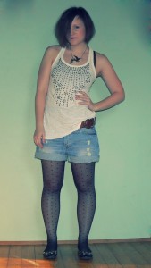 Da es gestern so Sommerlich war, dass ich mir tatsächlich den ersten Sonnenbrand geholt habe, konnte ich heute mal auch richtig Sommerlich angezogen das Haus verlassen. Zwar werden nackte Beine noch nicht hergezeigt, aber immerhin kurze Hosen. Das ist übrigens ihr erster Ausflug in die große weite Welt. Ich habe sie neulich noch gegen eine kleinere bei H&M umgetauscht. Und meine lieblings Nietenballerinas durften auch seit einem halben Jahr endlich wieder mal raus auf die frische Luft. Übrigens die besten und bequemsten Schuhe die ich je hatte!